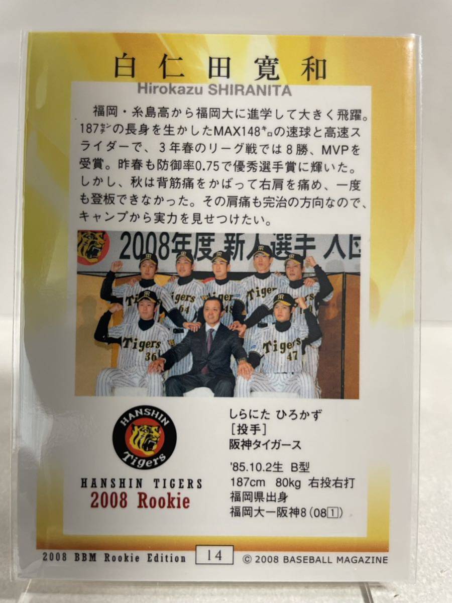 白仁田寛和 ルーキーカード 14 BBM 2008 ベースボールマガジン 阪神タイガース