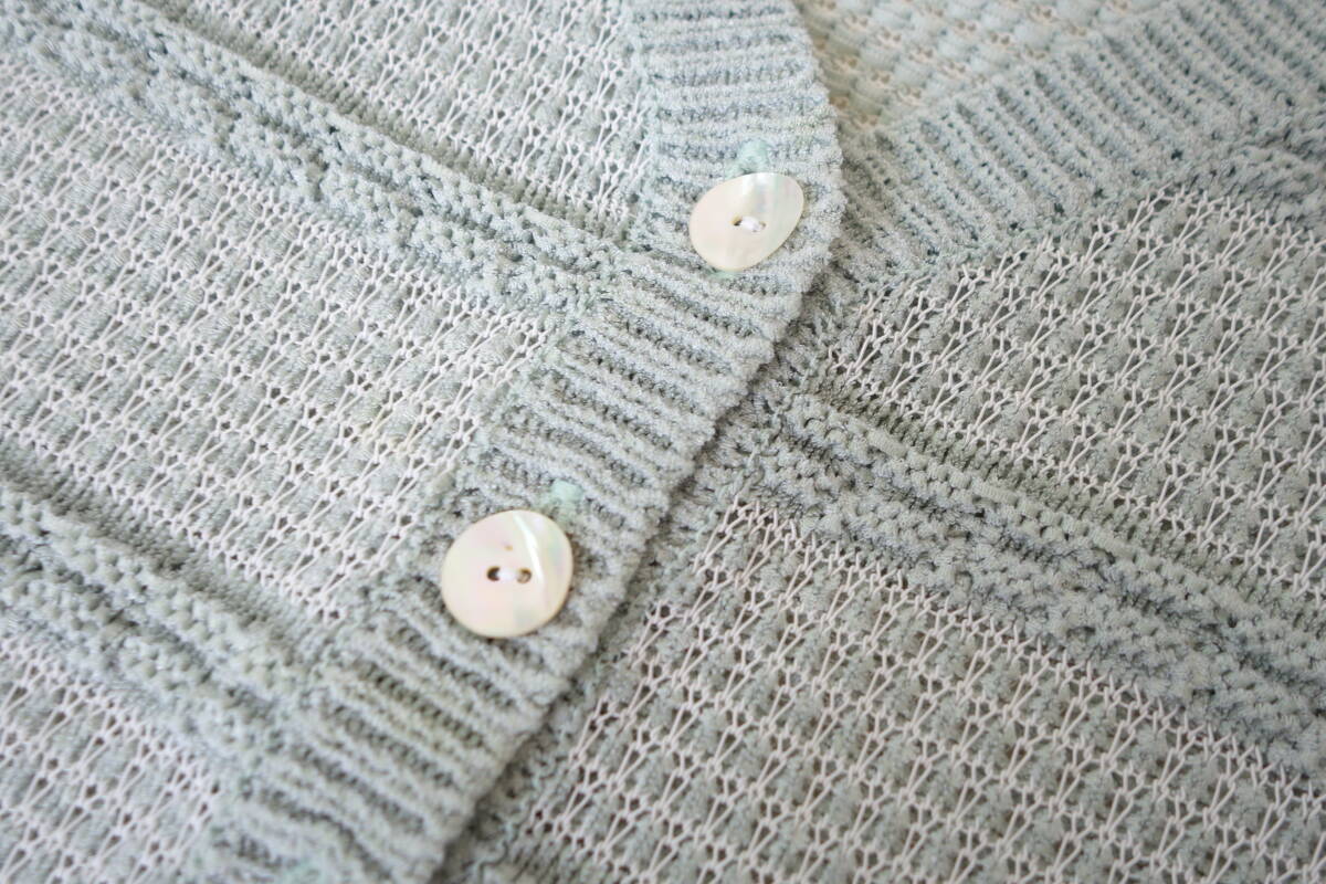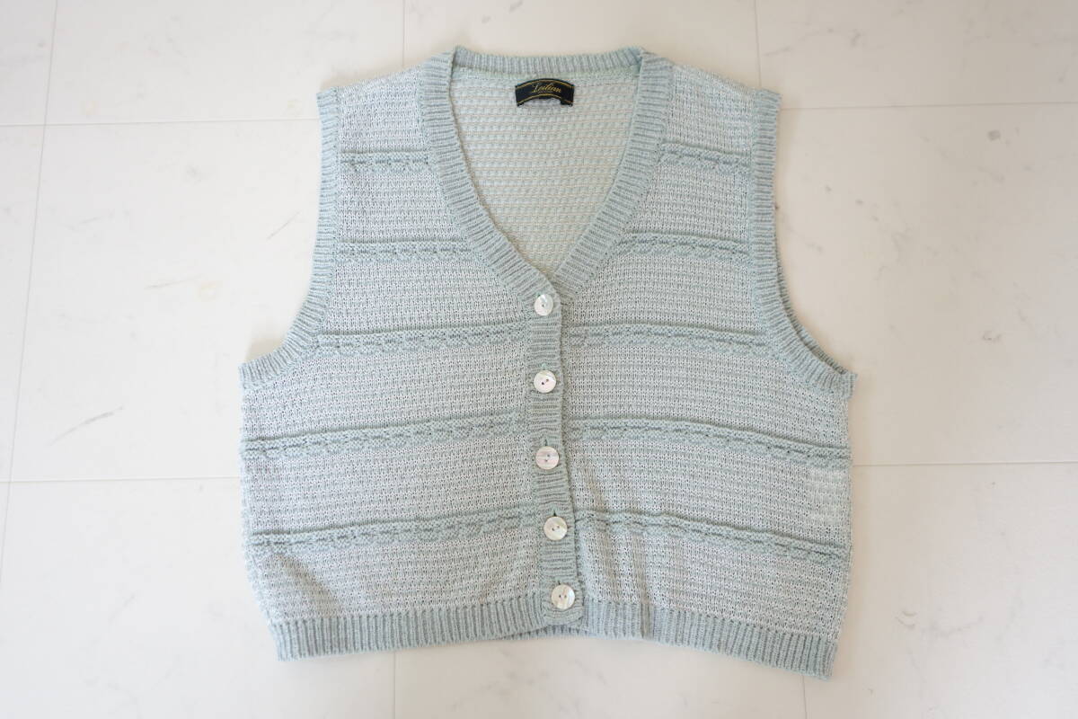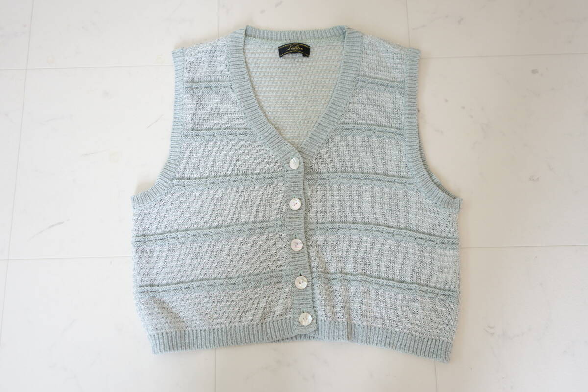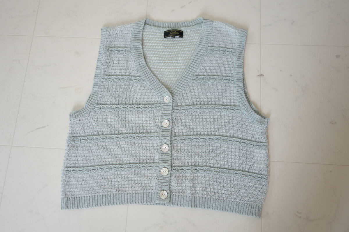 美品 レリアン Leilian サマーベスト ジレ ミントカラー 透け感 編み込みベスト 大きめ 13+ 日本製