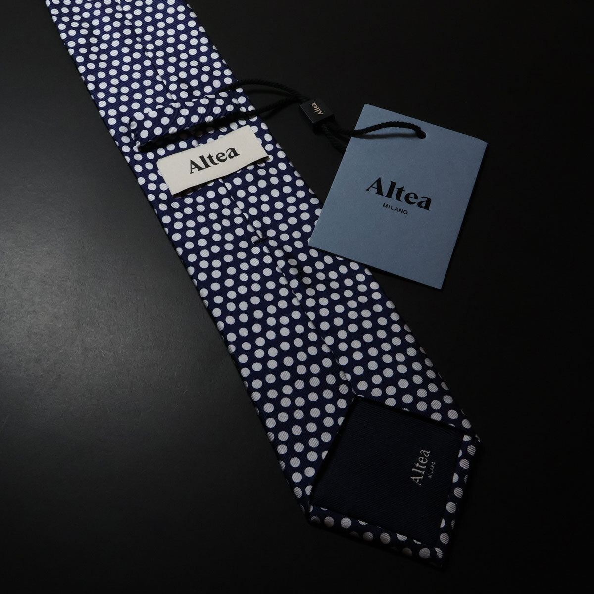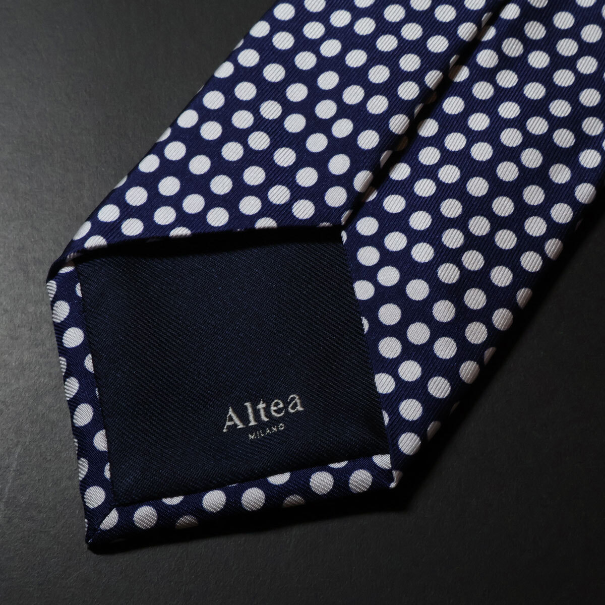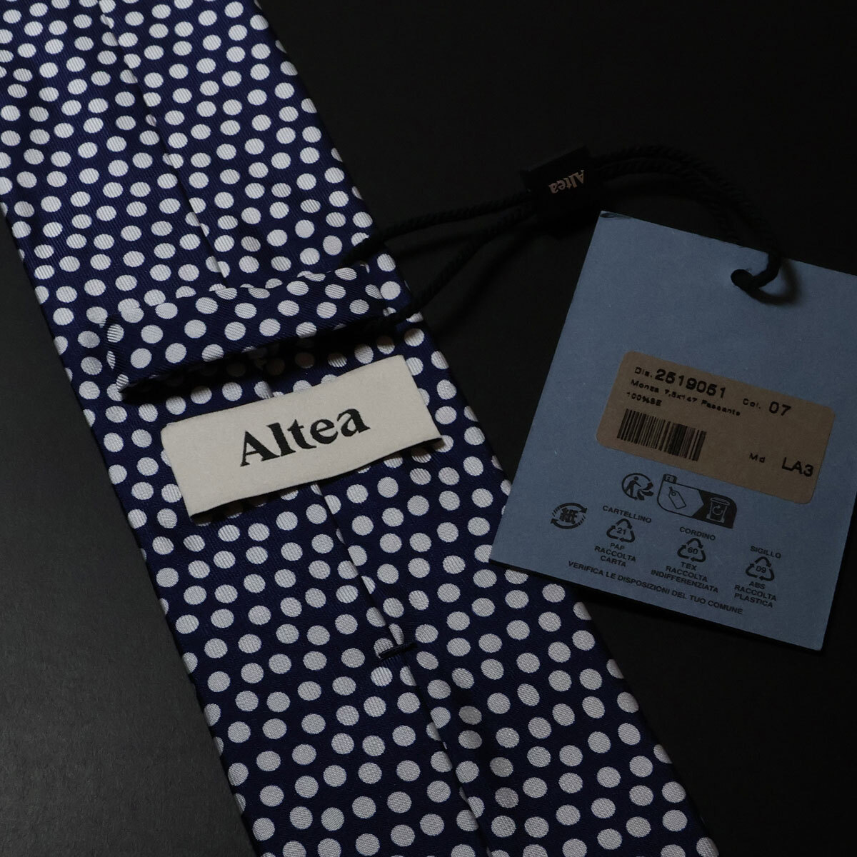 altea アルテア イタリア製 ネクタイ <altea アルテア> 1892年、イタリアはミラノにジュゼッペ・サルトーリが一軒のネクタイ店を開店しました。 たちまち評判になり、洗練されたミラノっ子たちがネクタイを買い求めました。 ネクタイ&スカーフが主力アイテムでありましたが、 シンプルかつベーシックなアイテムに、得意とするプリントや鮮やかなカラーでアルテアの世界を表現する トータルファッションブランドとして、現在はコレクションも発表しています。 伊勢丹・三越・高島屋・阪急などのデパート、 ビームス・シップス・バーニーズ・ユナイテッドアローズなどのセレクトショップで好評販売中です。 ご着用最適シーズン:オールシーズン カラー:ネイビー プリント柄 サイズ:剣先幅7.5㎝ 素材:シルク100% 定価:16,500円 |