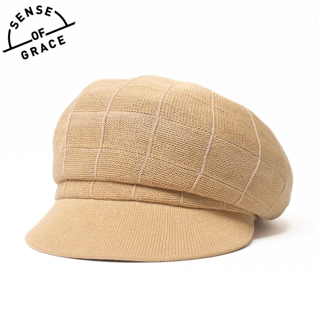 新品 SENSE OF GRACE チェック ニットサーモキャスケット ベージュ