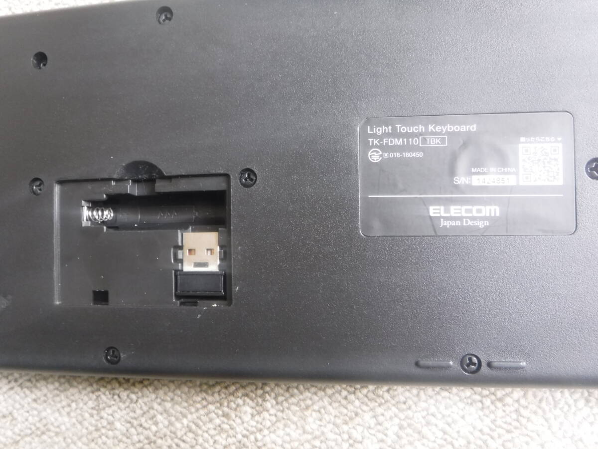 【中古】ELECOM 抗菌 無線 薄型 フル キーボード TK-FDM110 TKB ◆ エレコム ワイヤレス【動作確認済】
