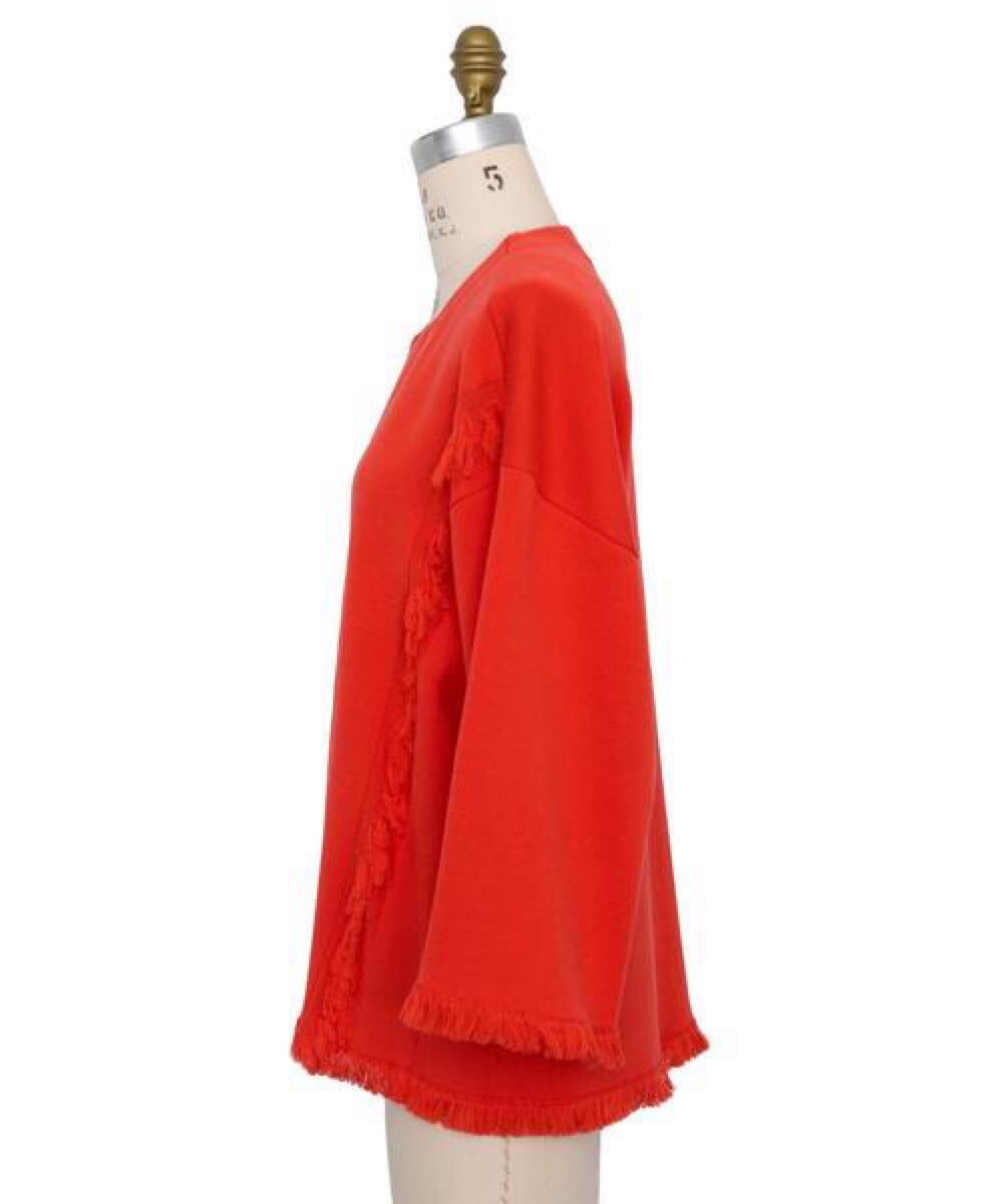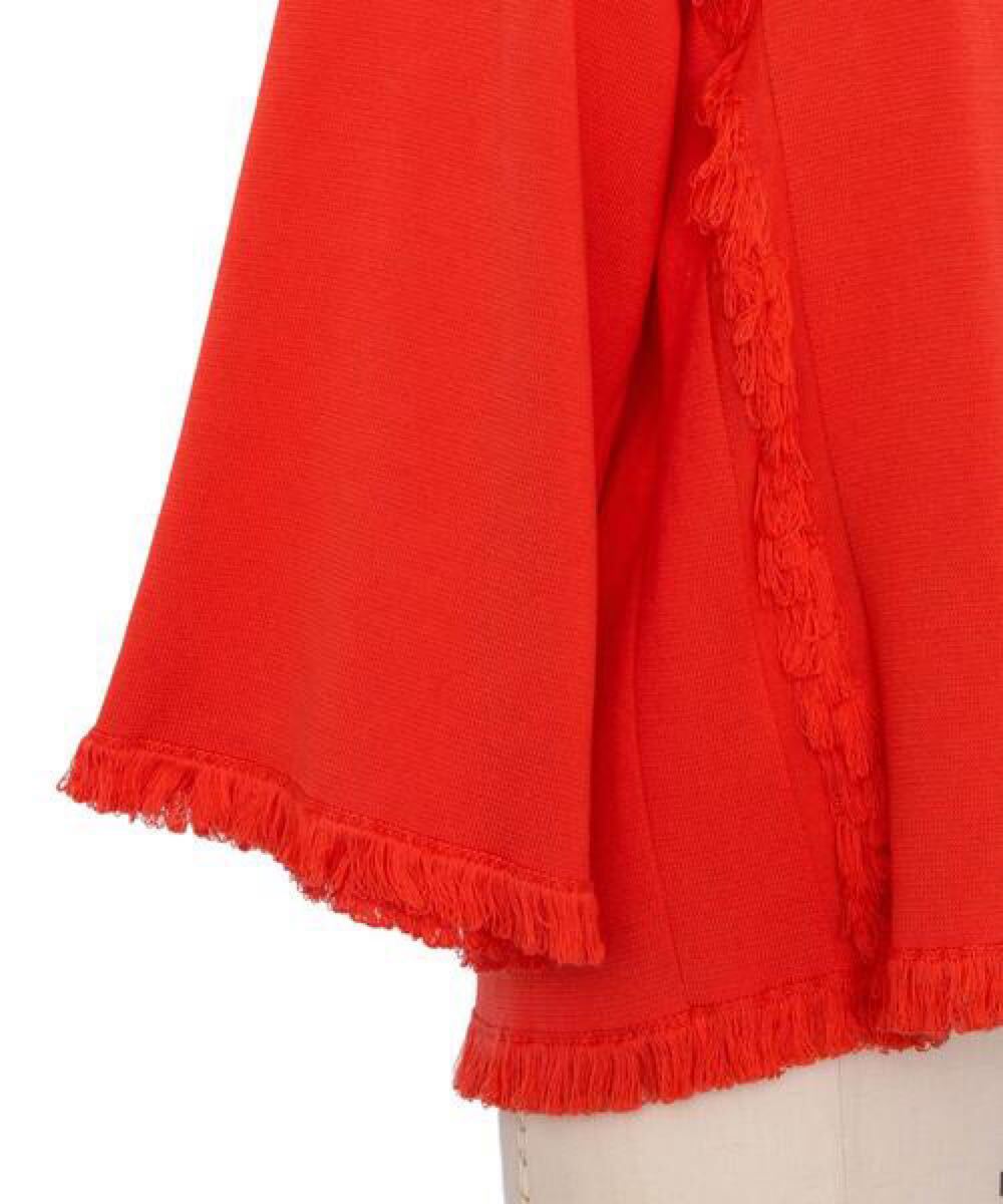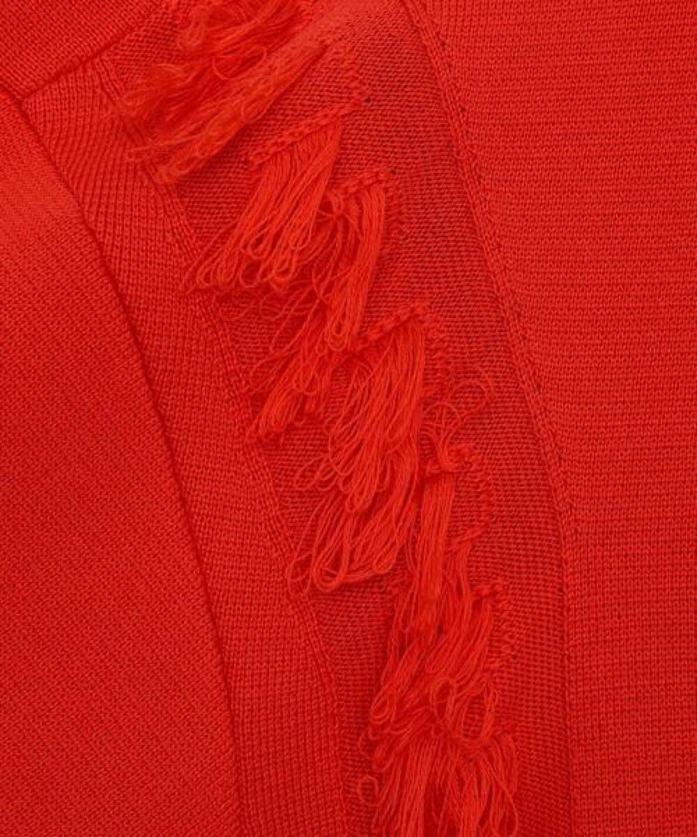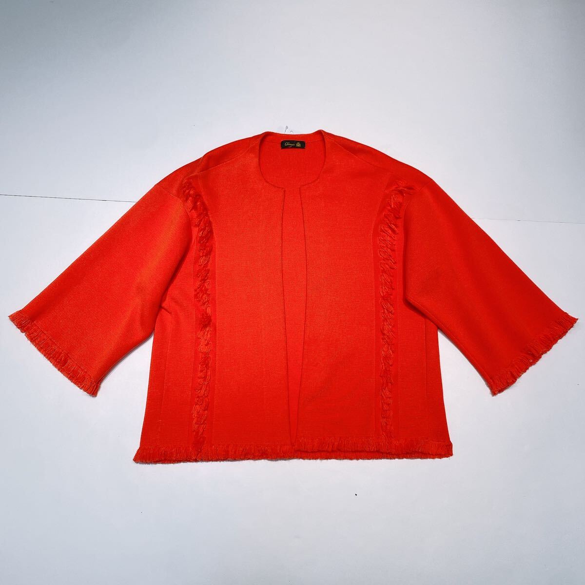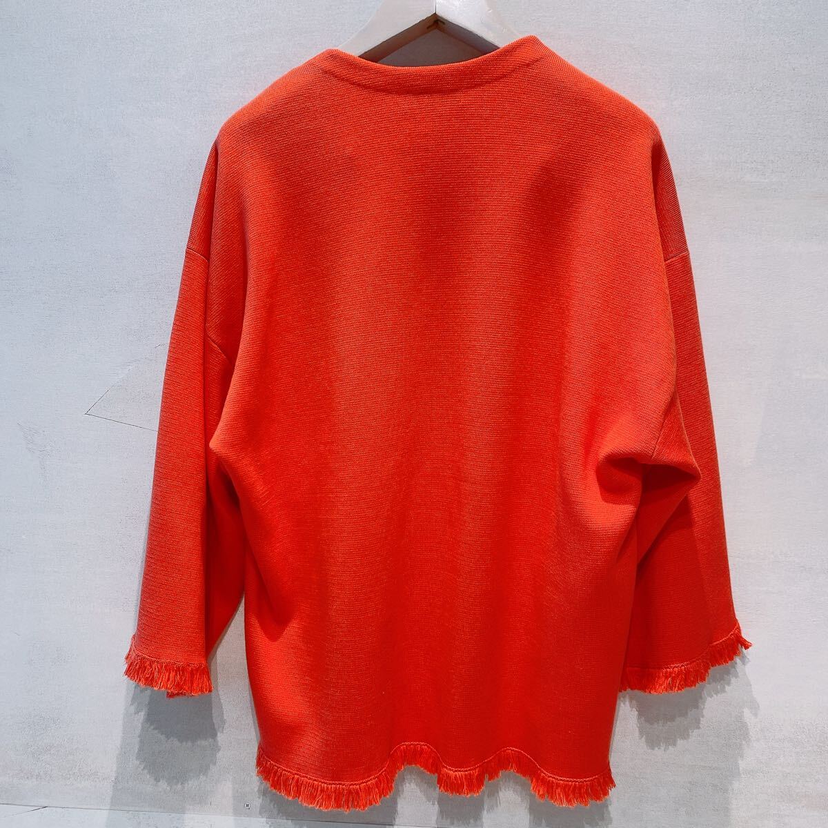 フリンジデザインがアクセントのミラノ編みニットジャケットシックな印象がありながら軽やかに着こなせる1枚です。