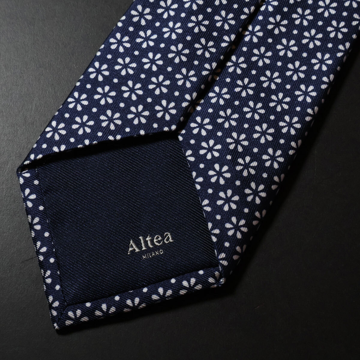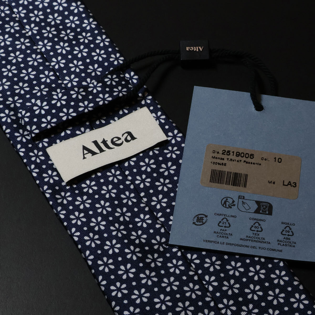 altea アルテア イタリア製 ネクタイ <altea アルテア> 1892年、イタリアはミラノにジュゼッペ・サルトーリが一軒のネクタイ店を開店しました。 たちまち評判になり、洗練されたミラノっ子たちがネクタイを買い求めました。 ネクタイ&スカーフが主力アイテムでありましたが、 シンプルかつベーシックなアイテムに、得意とするプリントや鮮やかなカラーでアルテアの世界を表現する トータルファッションブランドとして、現在はコレクションも発表しています。 伊勢丹・三越・高島屋・阪急などのデパート、 ビームス・シップス・バーニーズ・ユナイテッドアローズなどのセレクトショップで好評販売中です。 ご着用最適シーズン:オールシーズン カラー:ネイビー プリント柄 サイズ:剣先幅7.5㎝ 素材:シルク100% 定価:16,500円 |