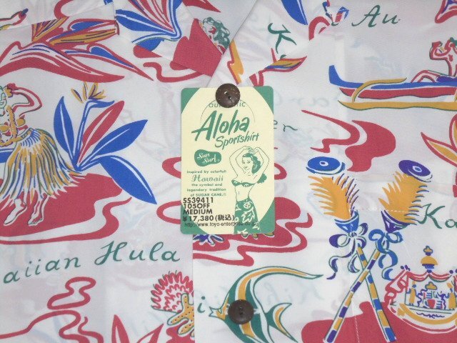 25 東洋 サンサーフ SS39411 105 オフホワイト M 半袖 アロハ シャツ SUN SURF HAWAIIAN HULA