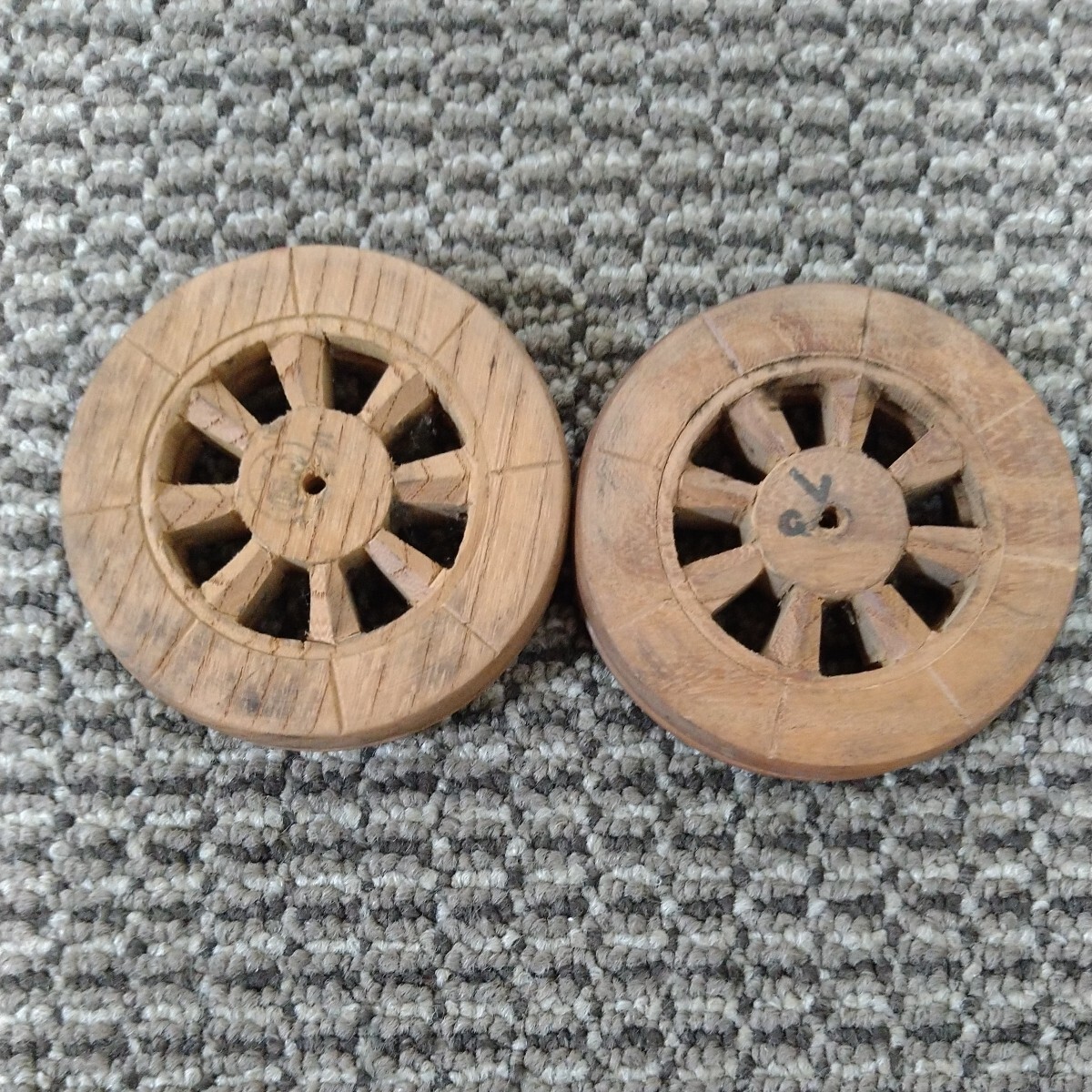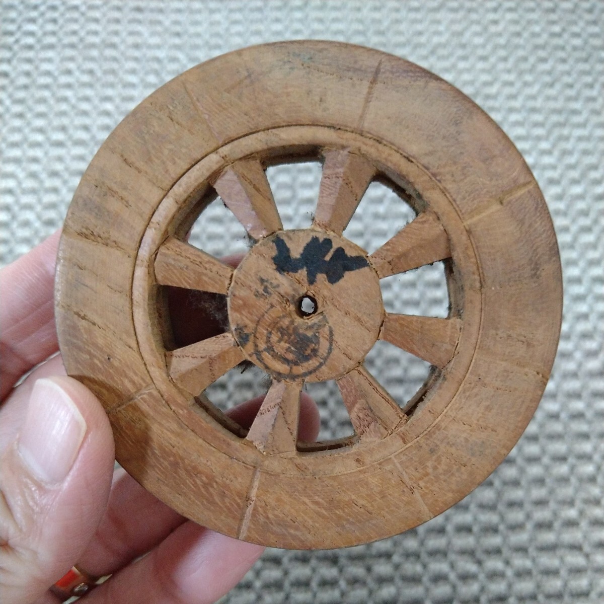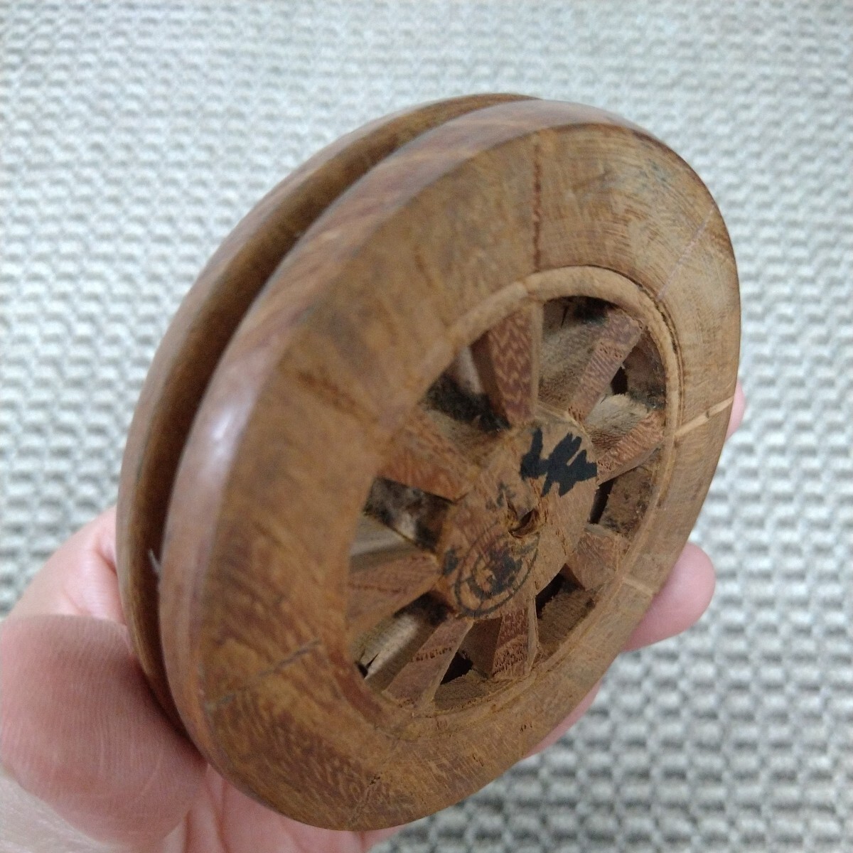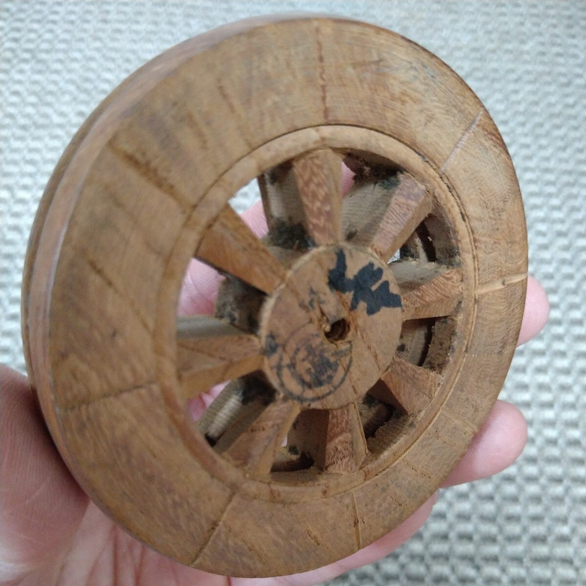 ジャンク品/長期保管品/メーカー不明/木製/壺車/ツボ車/墨壺/直径78mm長さ15mm/8本骨/2個セット