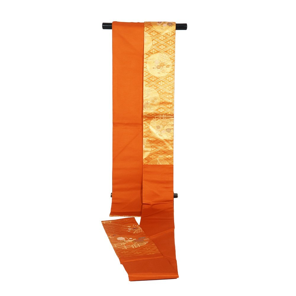 | 寸法 | おたいこの長さ:約119cm おたいこの巾:約30.5cm 半幅の長さ:約238cm 半幅の幅:約15.3cm 全長357cm (実寸ですが多少の測り間違いはご了承下さい) |