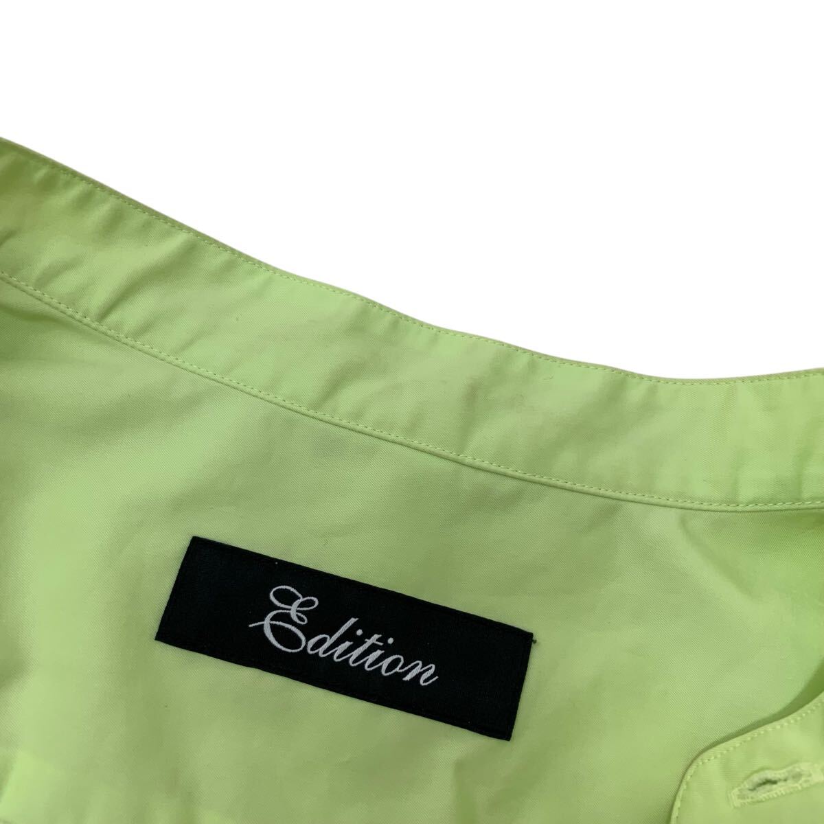 B451-26 Edition エディション シャツ ブラウス ロング チュニック トップス 長袖 バンドカラー 羽織り ライム 黄緑 レディース F 日本製