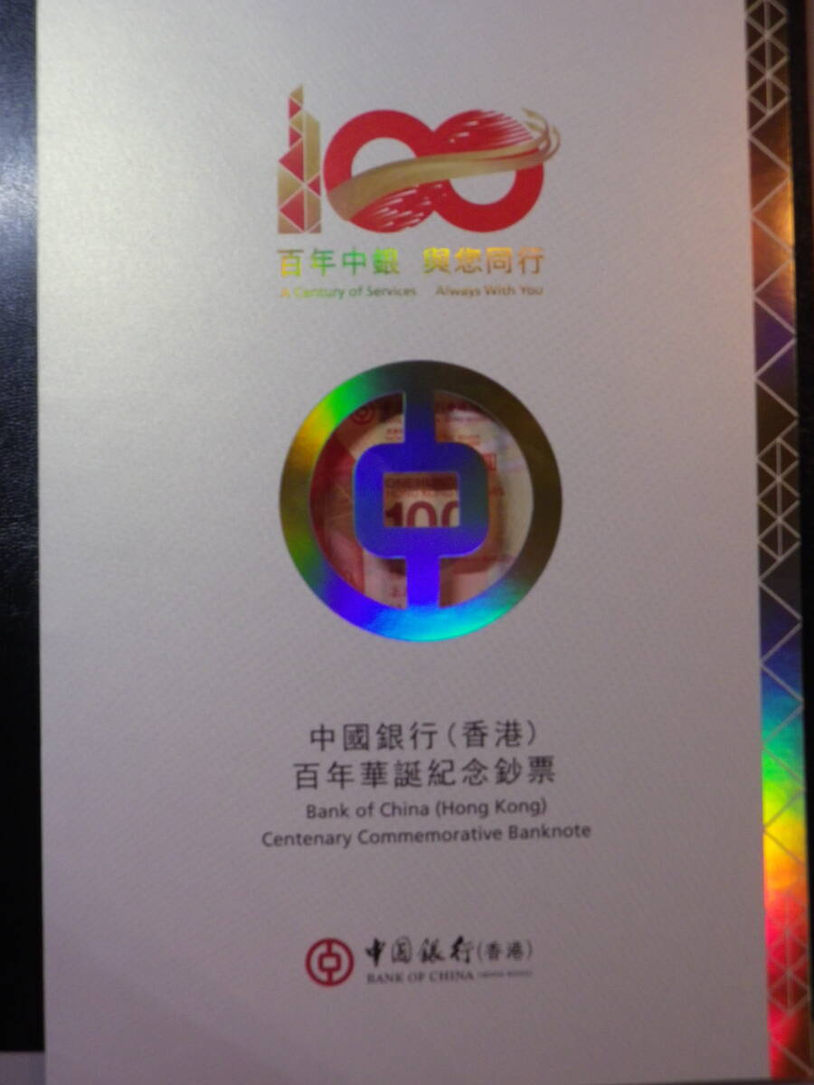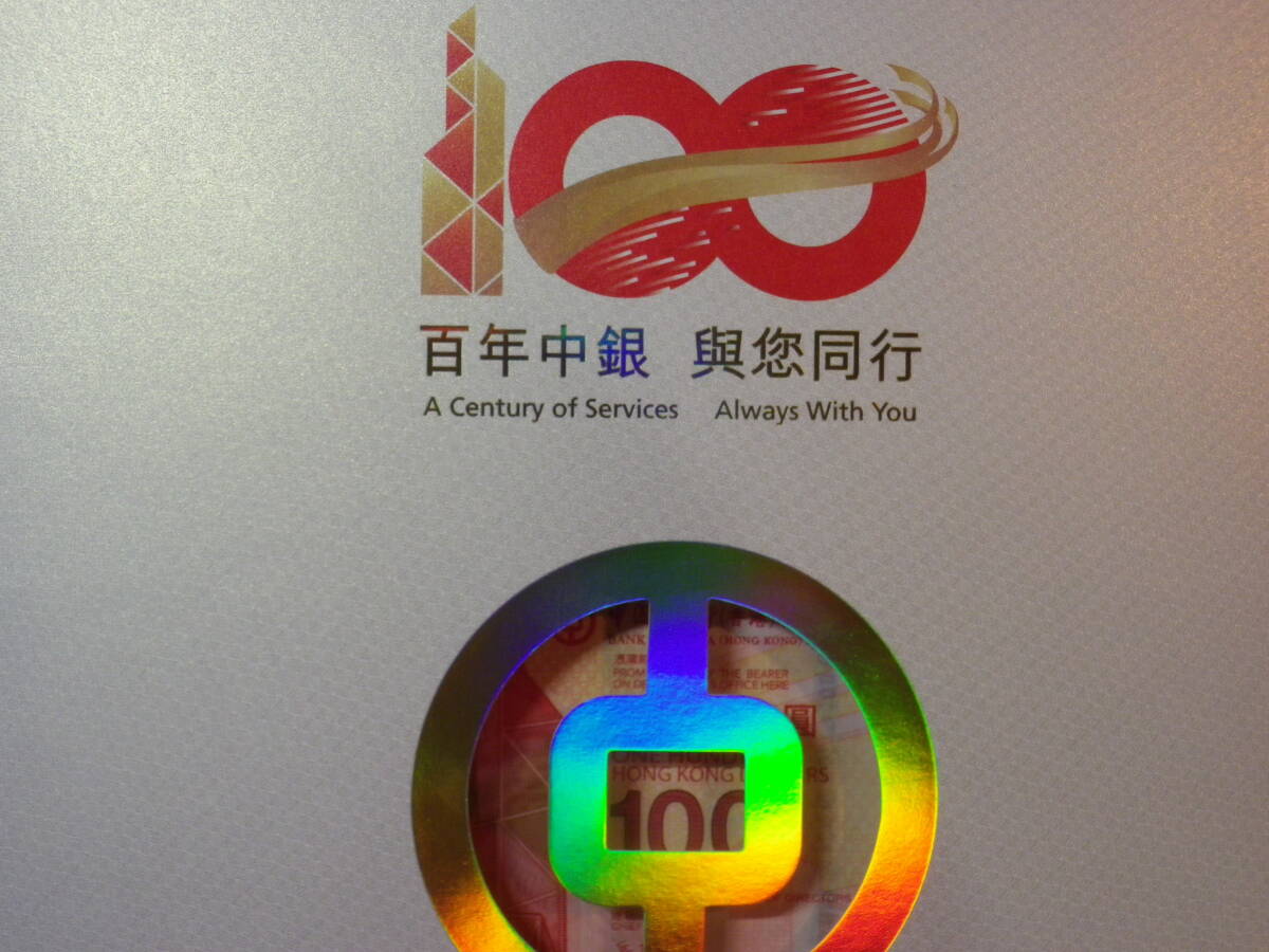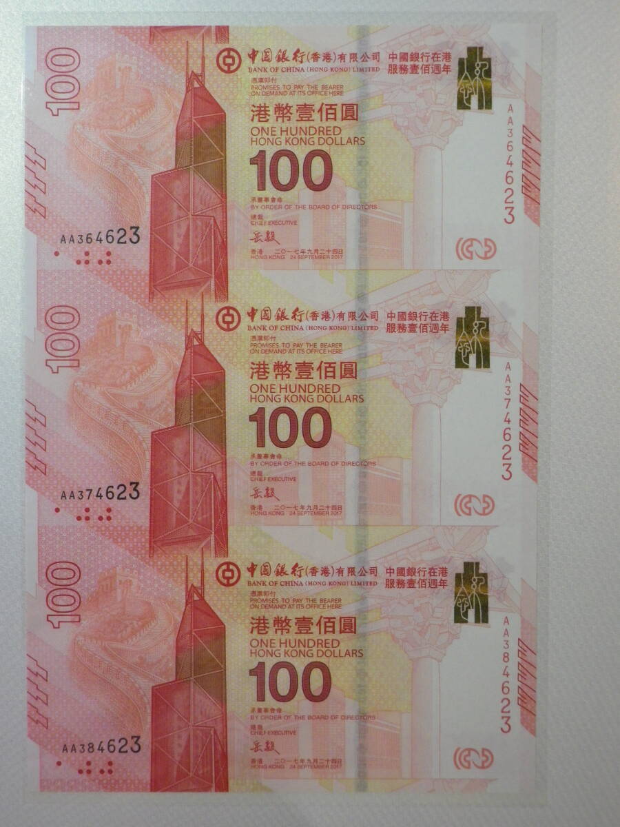 香港 / 中国銀行100周年記念 2017年 記念紙幣 3枚 AA券 アンカット&ホルダー 未使用 (B4サイズ)