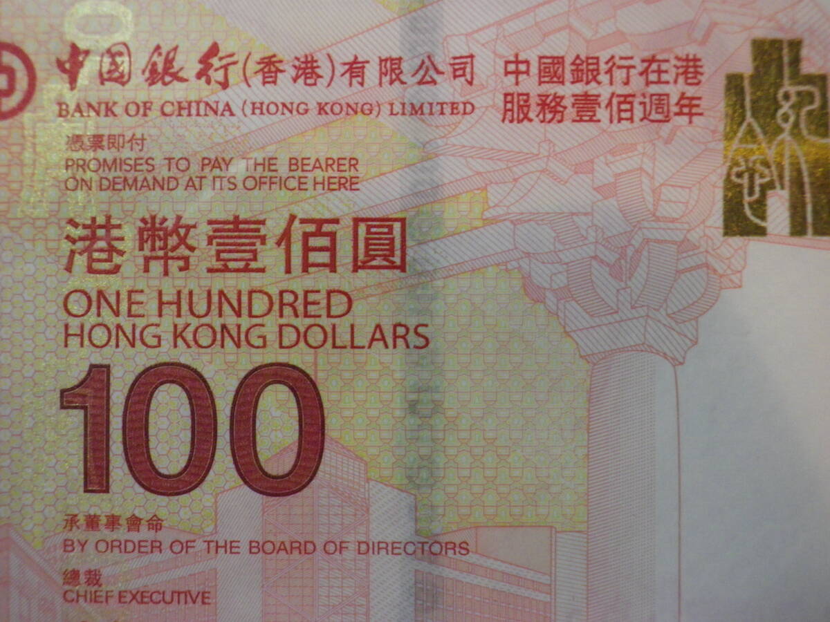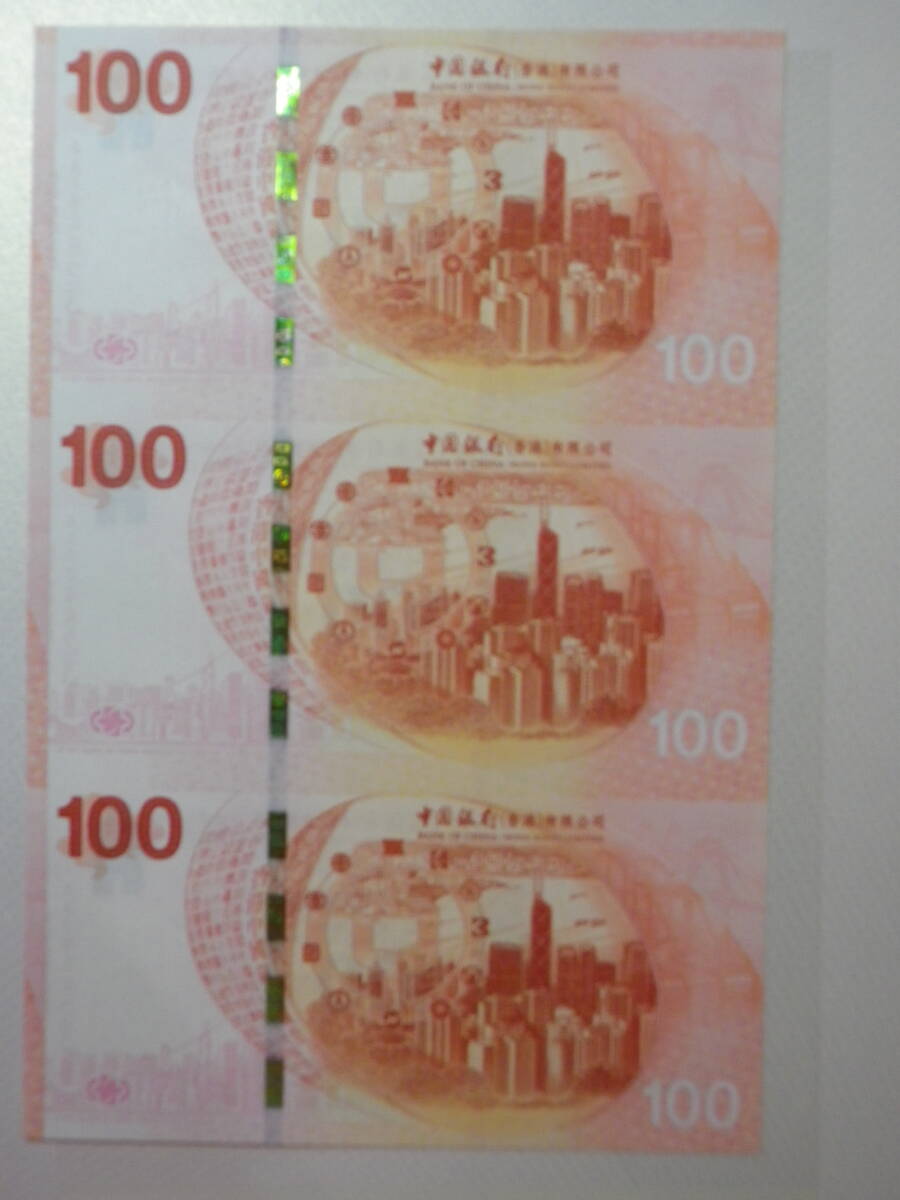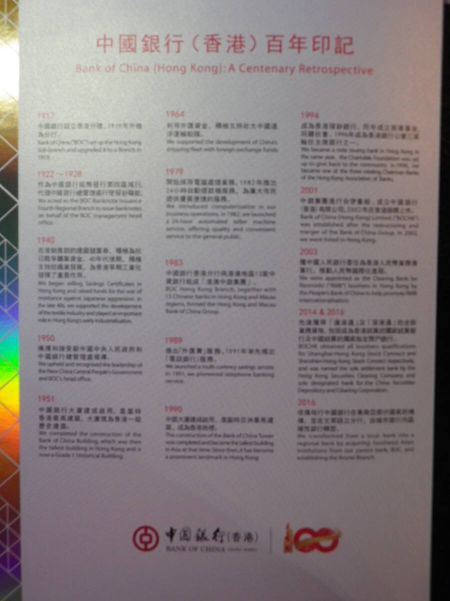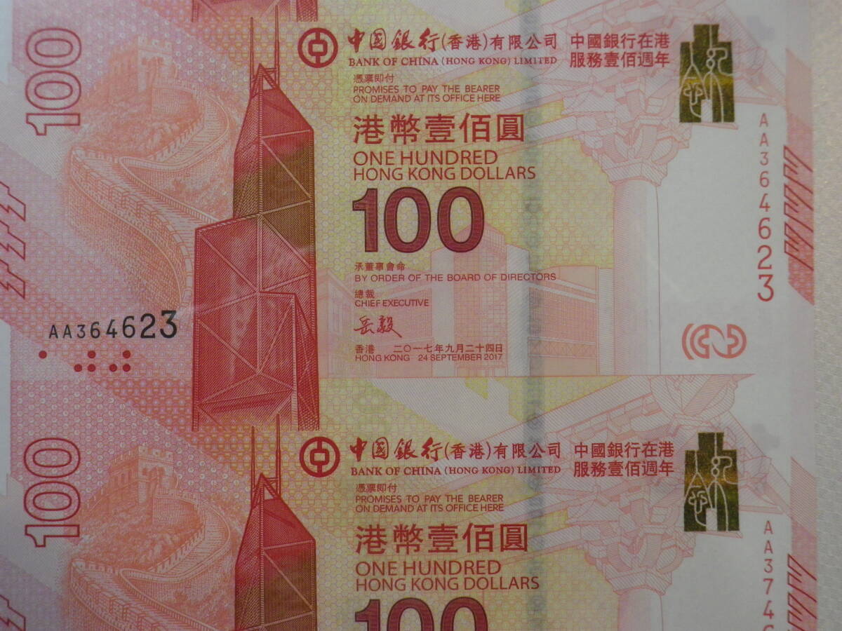 香港 / 中国銀行100周年記念 2017年 記念紙幣 3枚 AA券 アンカット&ホルダー 未使用 (B4サイズ)