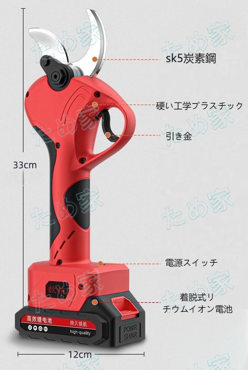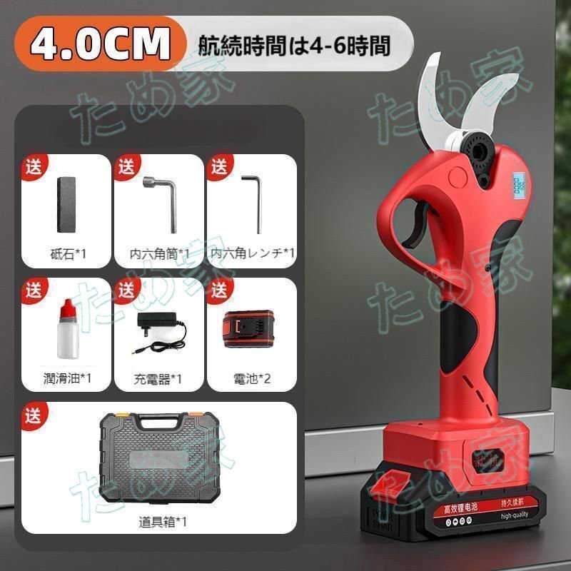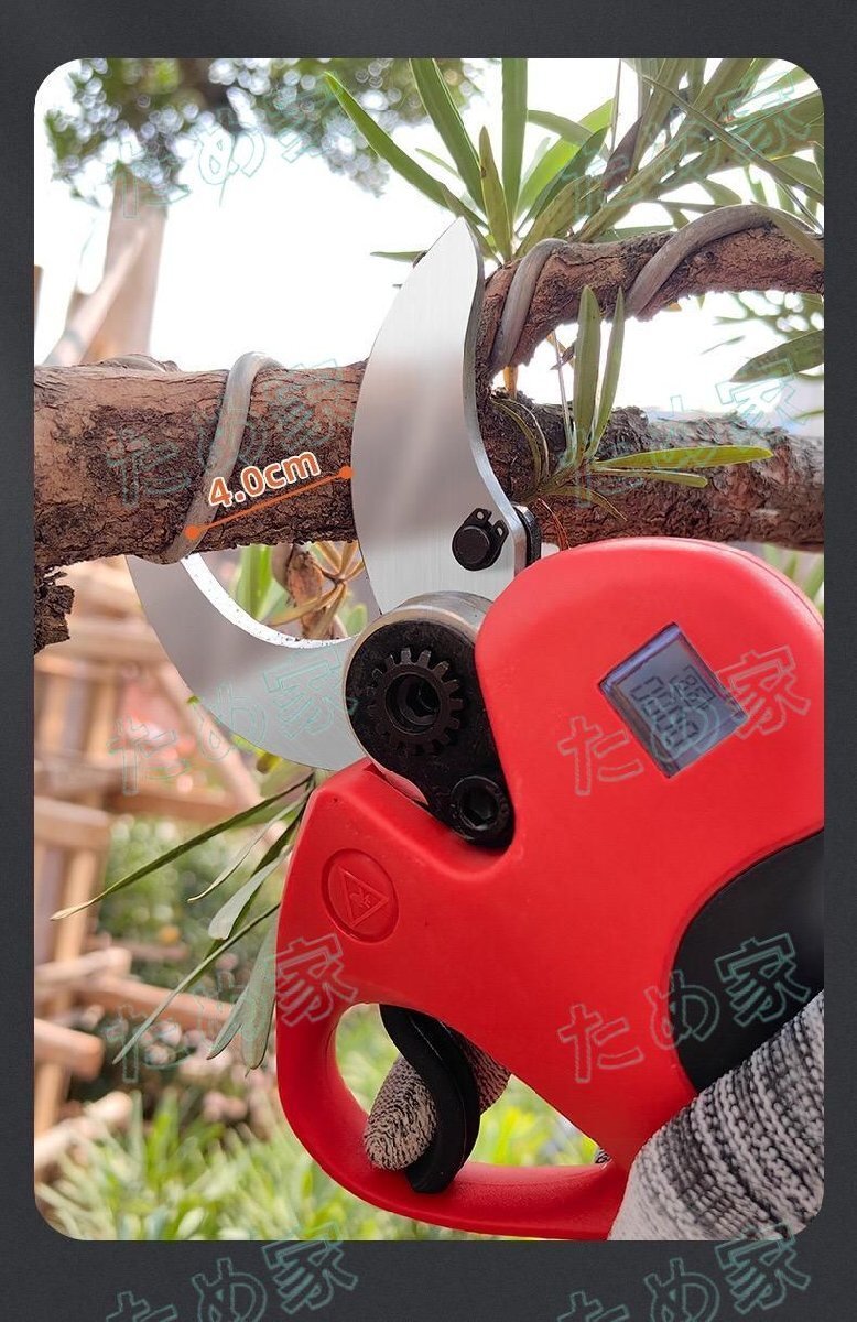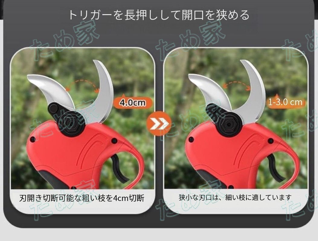 電動剪定鋏 コードレス 40mm充電式剪定ばさみ 電動ハサミ 剪定 電動剪定ばさみ 電動剪定バサミ工具 五芯電池*2 航続時間は4-6時間