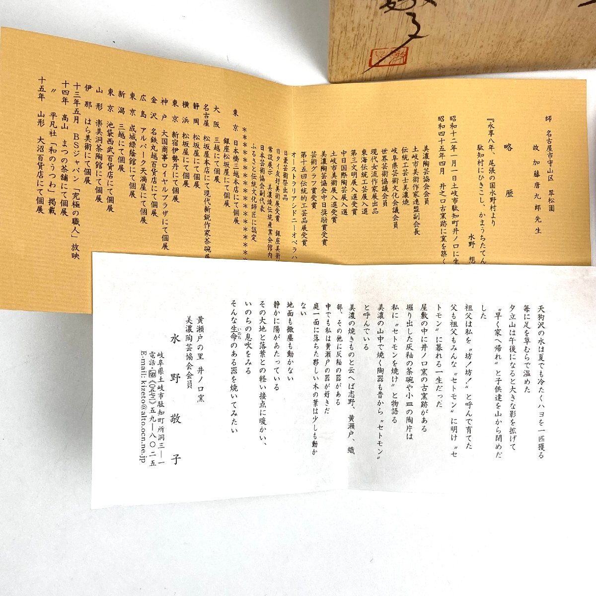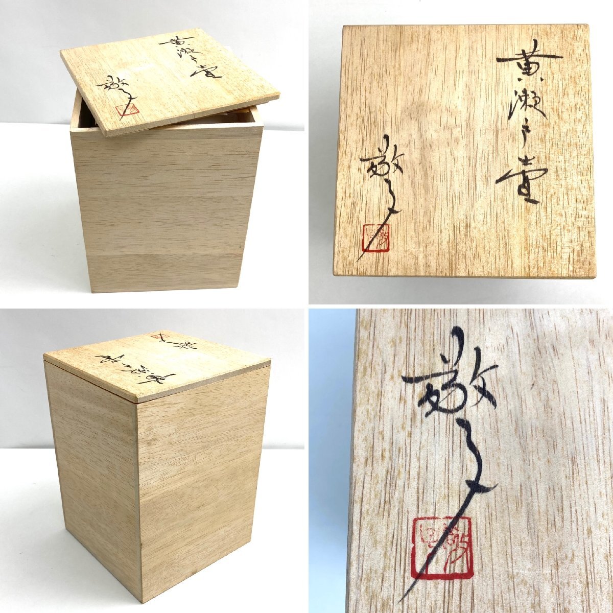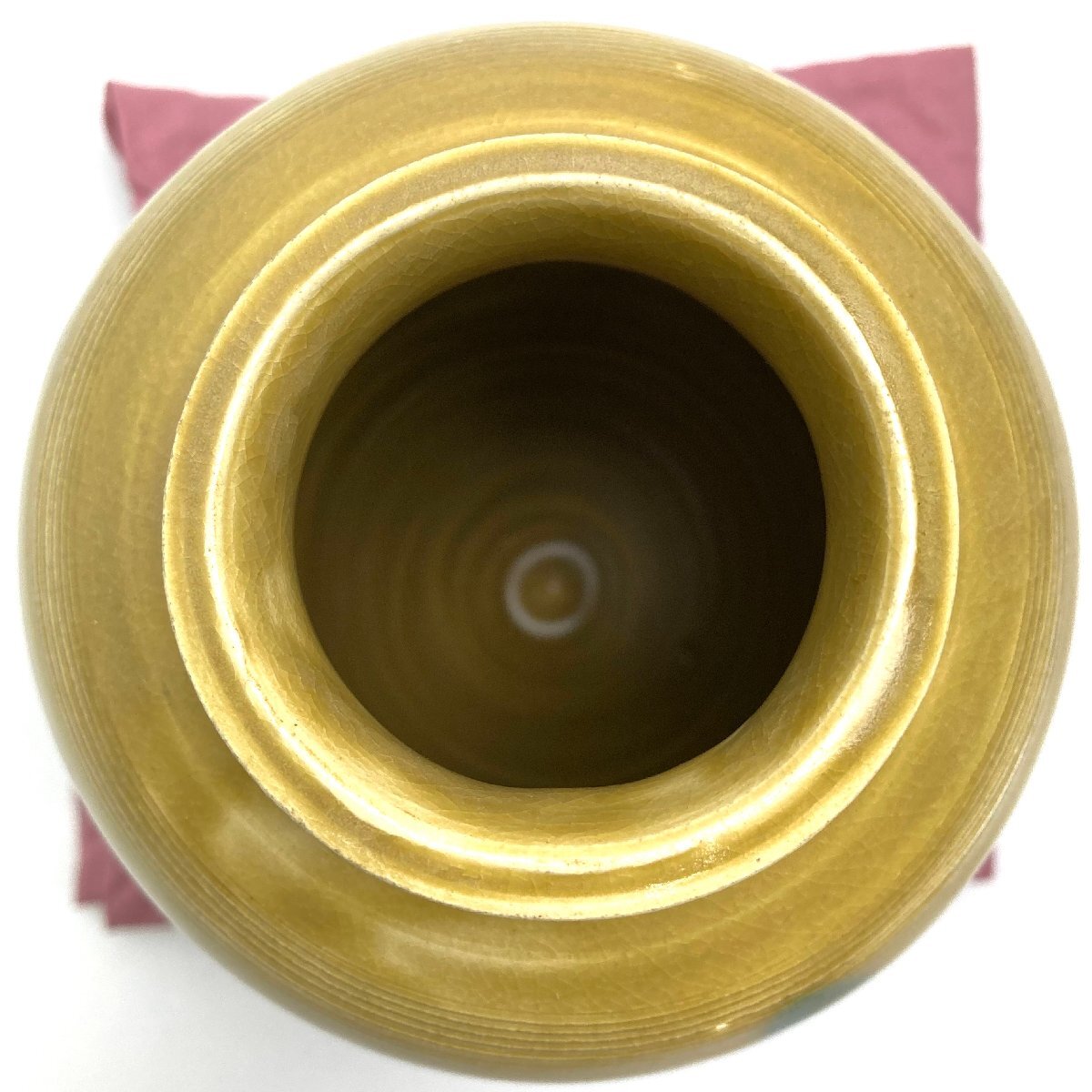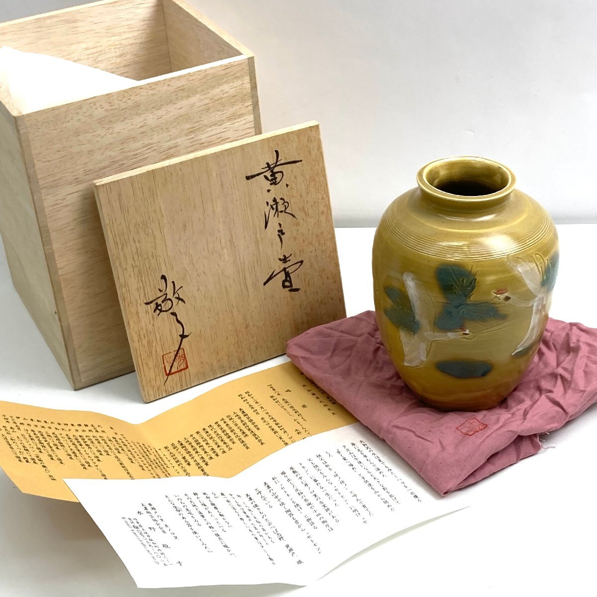 商品名 | e) 水野敬子造 黄瀬戸壺 鶴二羽 美濃焼 陶芸 工芸品 陶磁器 共箱・共布・栞有り ※経年保管品 |