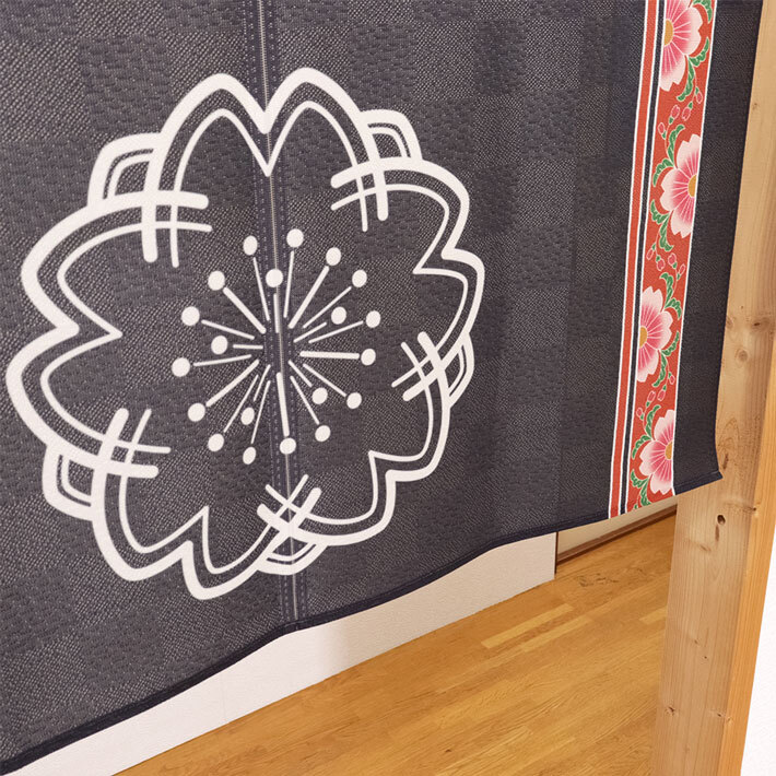 ■割れ目のないのれんです。真ん中のカットラインに沿ってハサミで切り込みを入れることもできます。竿通し部分まで切らないようにご注意ください。