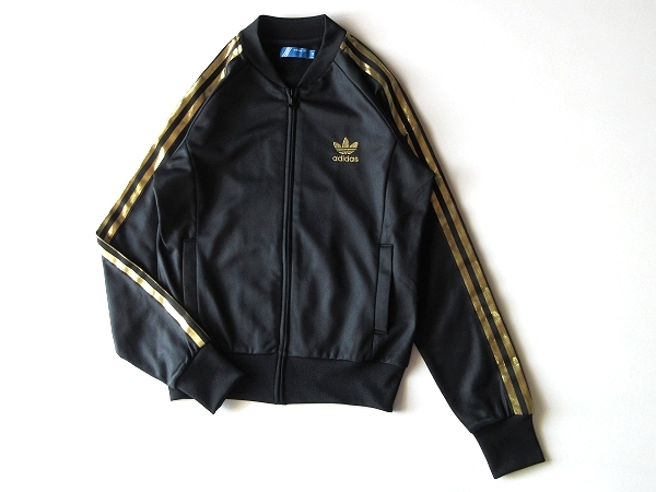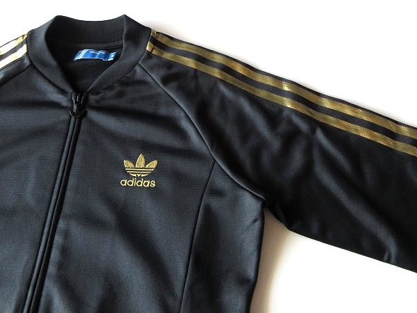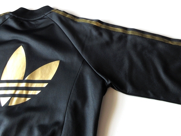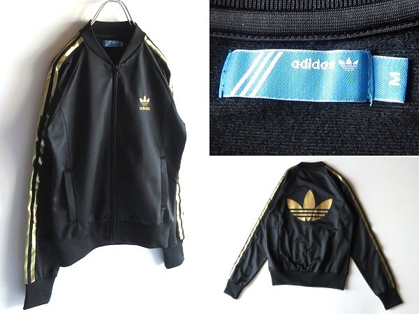 adidas originals アディダス トレフォイル ロゴ刺繍 バックデカロゴ ATPタイプ ジャージ トラックジャケット M ブラック ゴールド 黒金