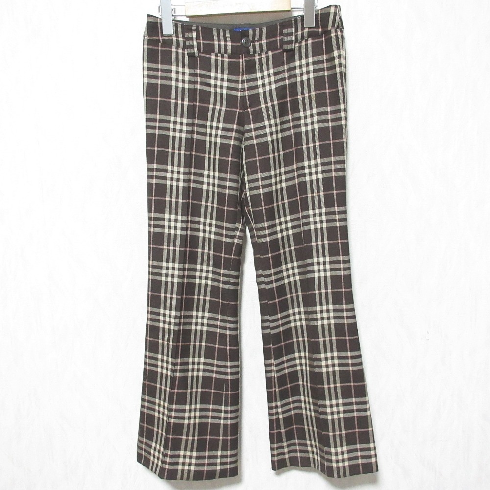 BURBERRY BLUE LABEL バーバリーブルーレーベル チェック柄 ブーツカット パンツ EQF41-582-65 38 ブラウン