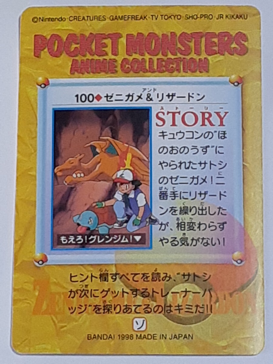 ☆1998年 カードダス ポケットモンスター アニメコレクション №100 『ゼニガメ&リザードン』  Carddass POCKET MONSTERS Pokemon