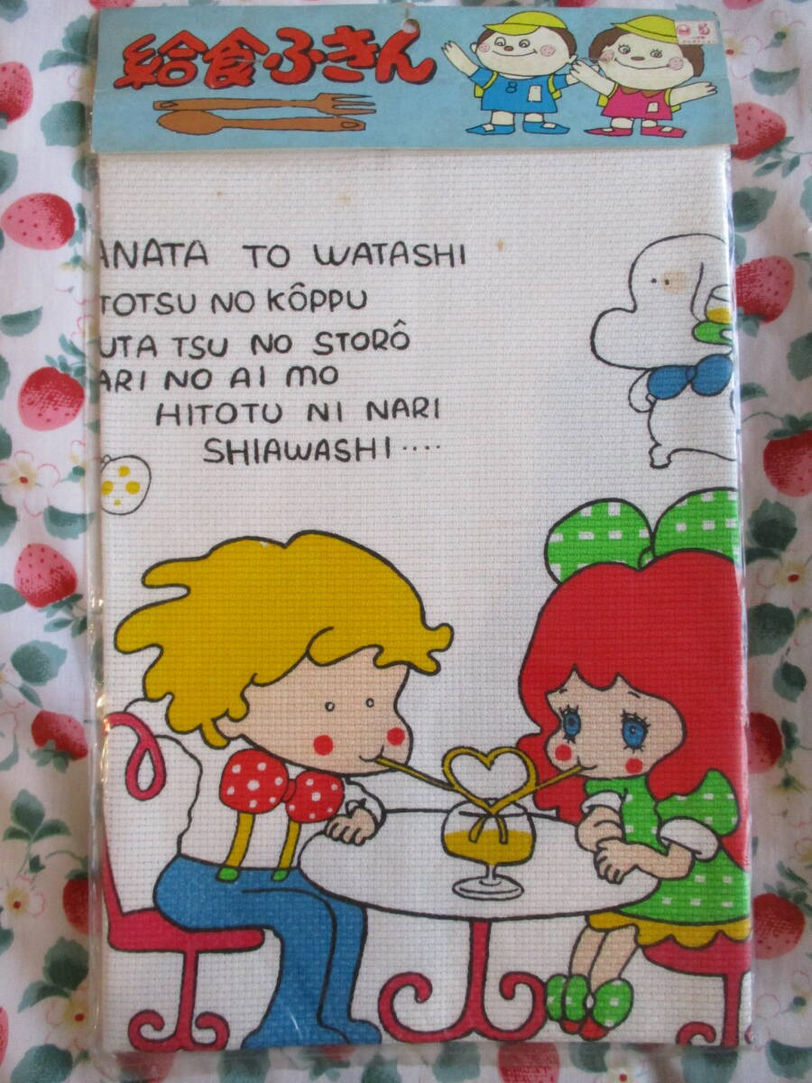 ■昭和レトロ【給食ふきん】〈男の子/女の子/ウエイトレスのワンちゃん〉平織り ナフキン