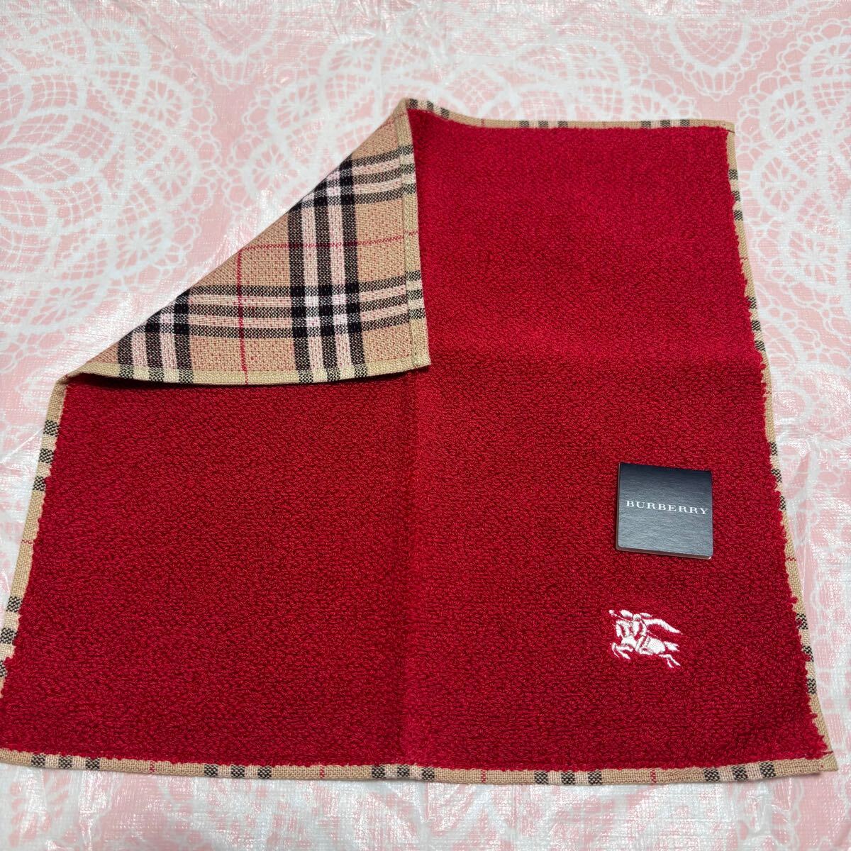 【人気柄】新品/BURBERRY/タオルハンカチ/正規品/バーバリー/綿100%/未使用/即決/匿名発送/ノバチェック/ハンドタオル/赤/白/ホースマーク