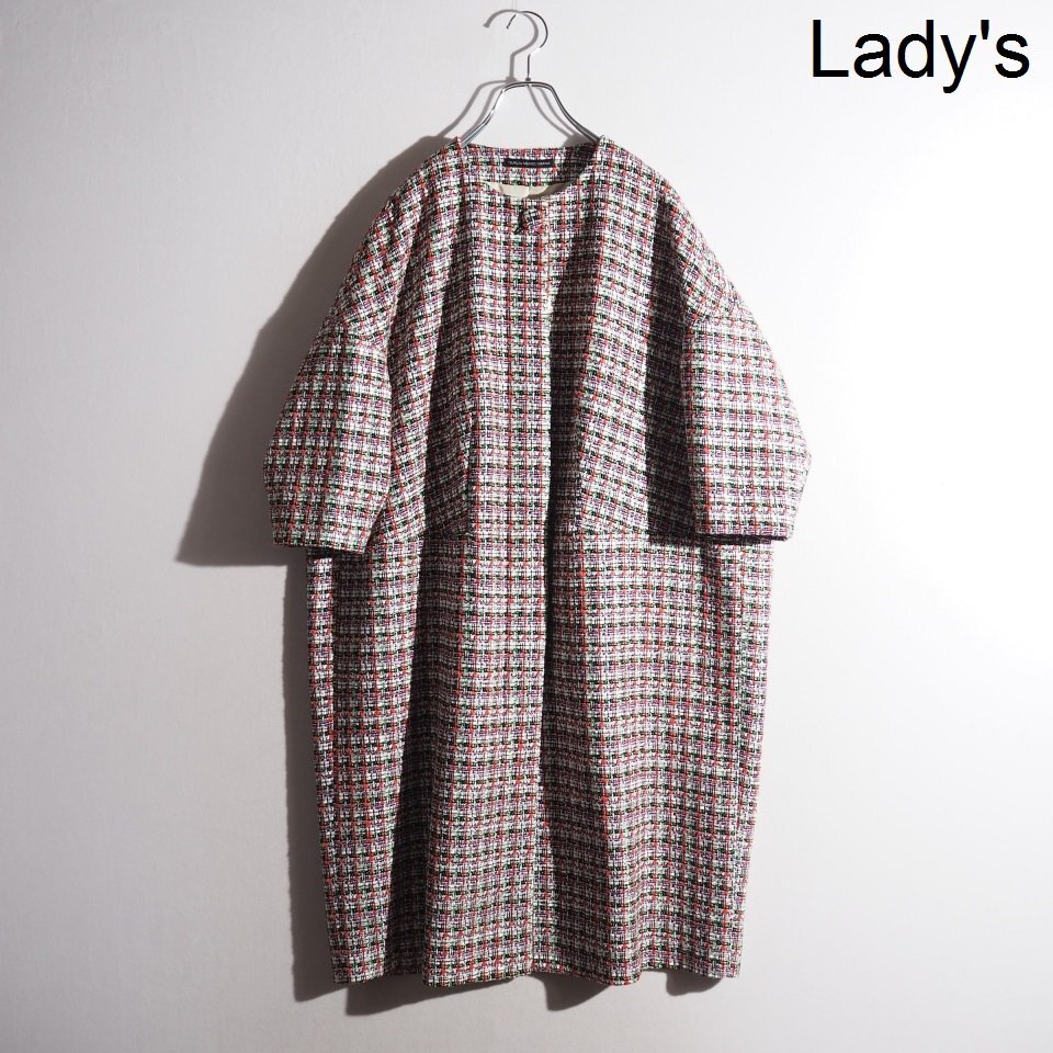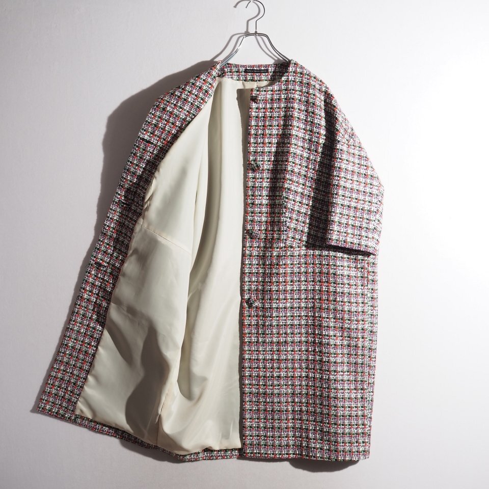 MULTI TWEED ノーカラー カラーツイードコート オーバーサイズ