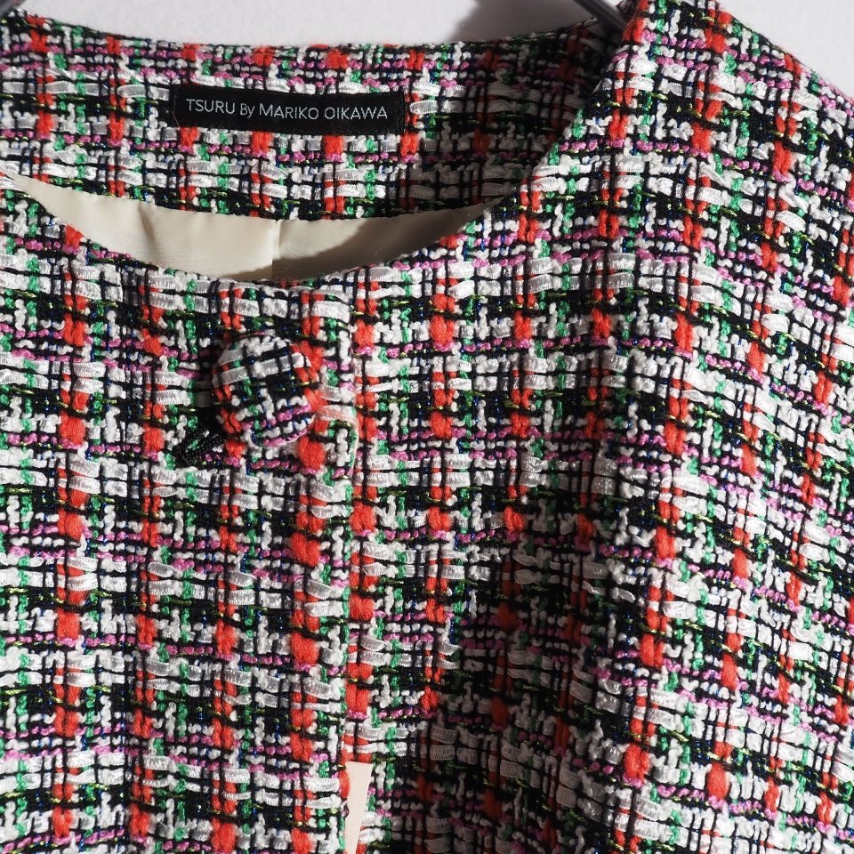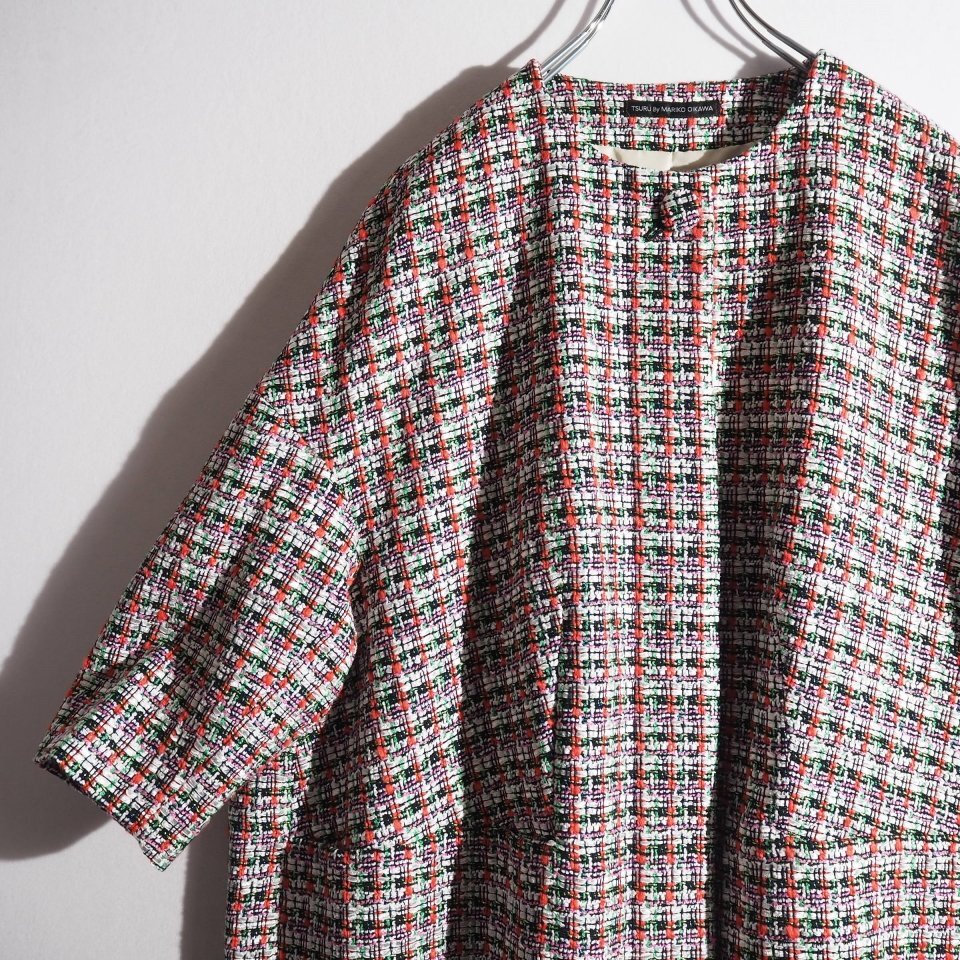 C4179P ▼TSURU By MARIKO OIKAWA ツル バイ マリコオイカワ▼ MULTI TWEED ノーカラー ツイードコート オーバーサイズ 春夏 rb mks