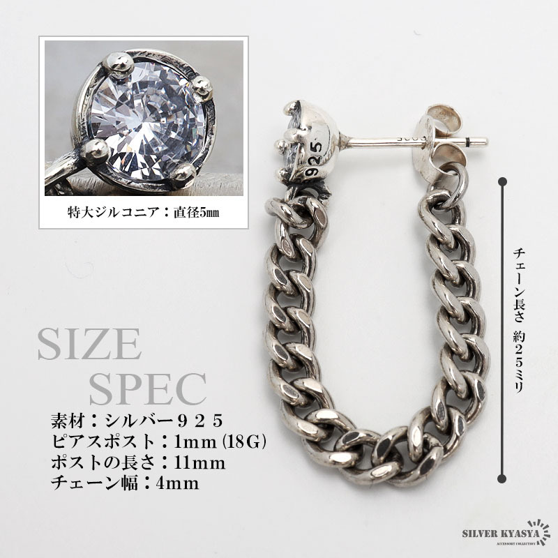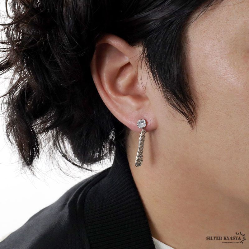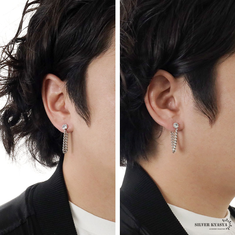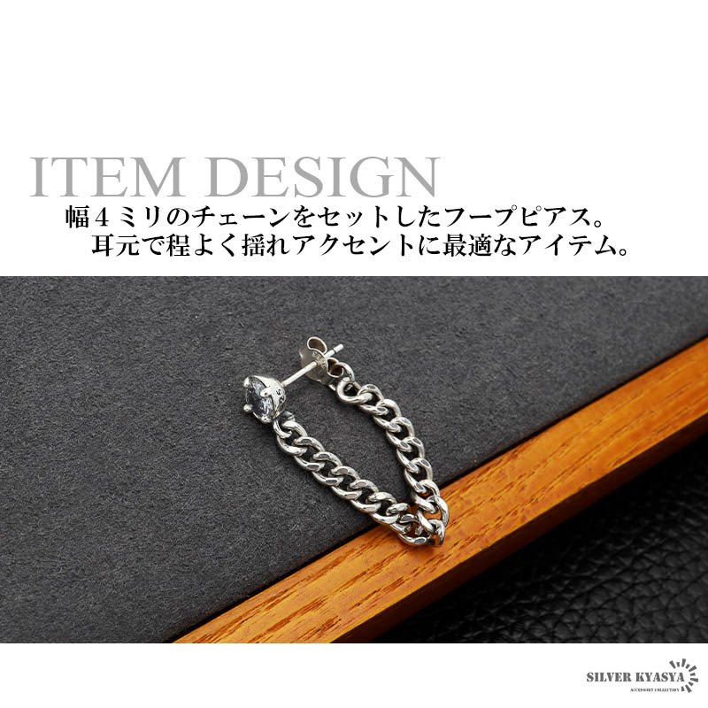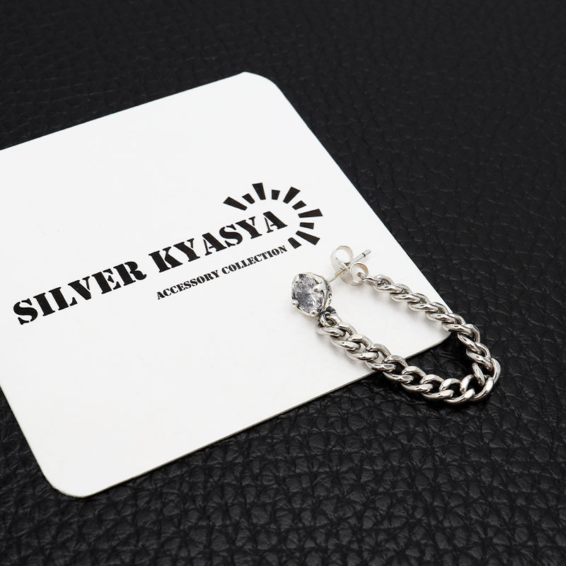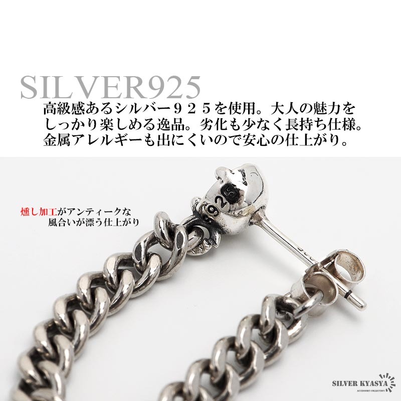 シルバー925 喜平チェーンピアス 4mm ドロップチェーン メンズ ドロップピアス 一粒 燻し 金属アレルギー対応 片耳用 1点