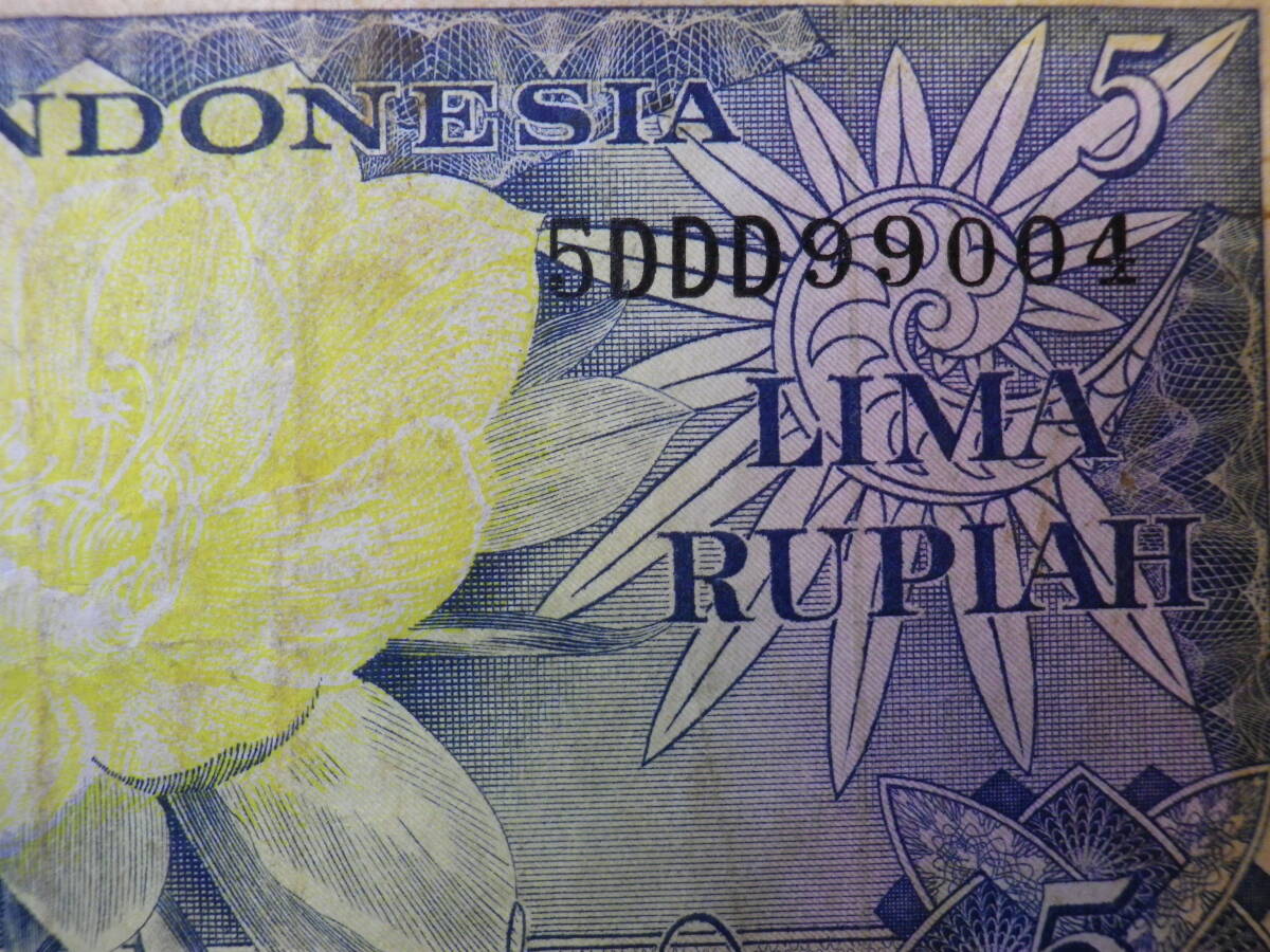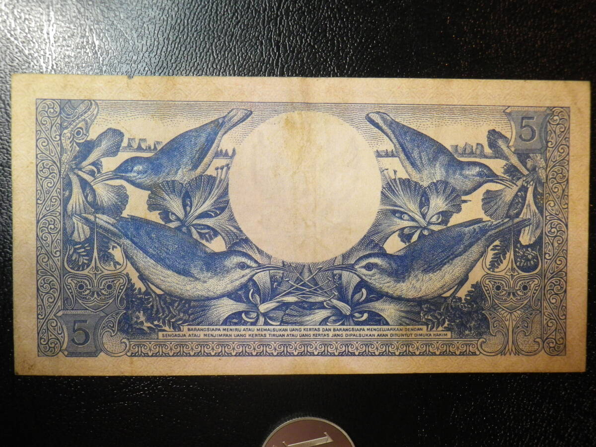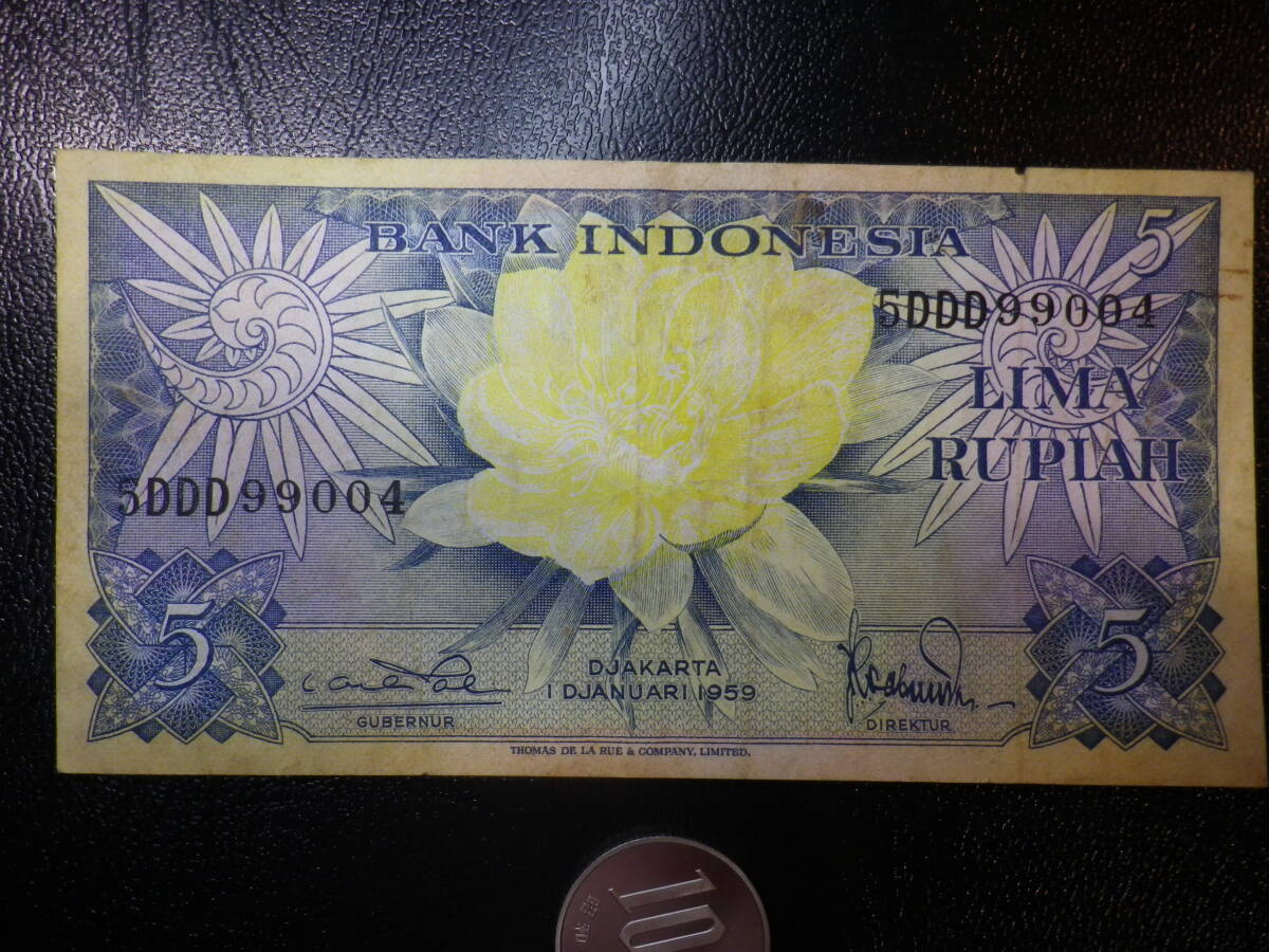 インドネシア 1959年 5Rupiah 並品 シリアル記号(DDD)