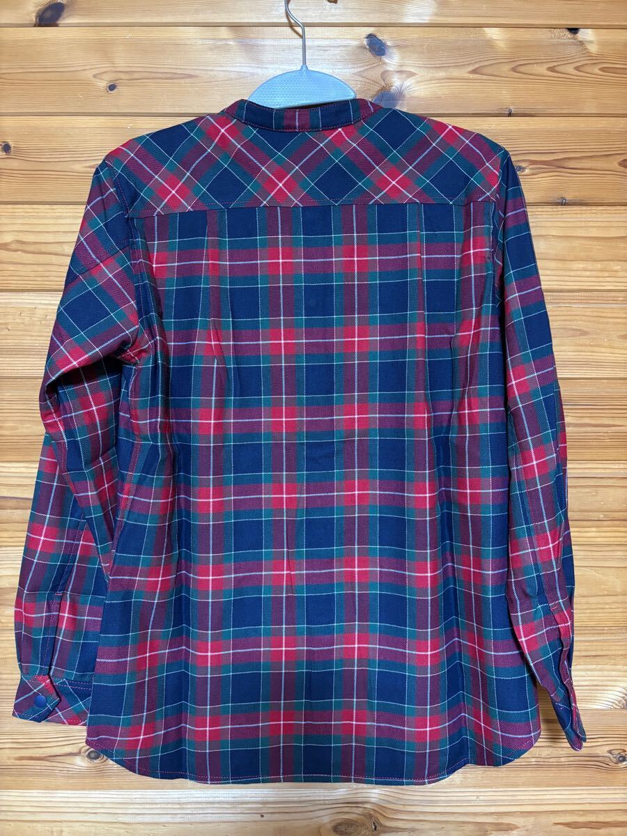 軽量ながら十分な保温性と速乾性を備えたスタンドカラーのチェック柄フランネルシャツ。