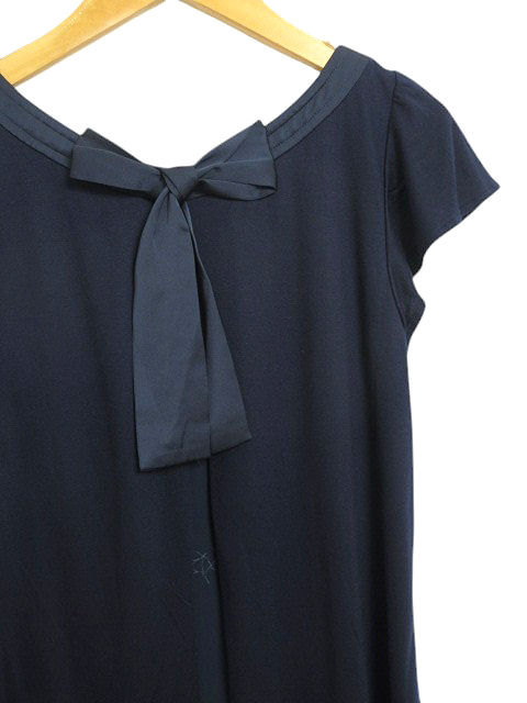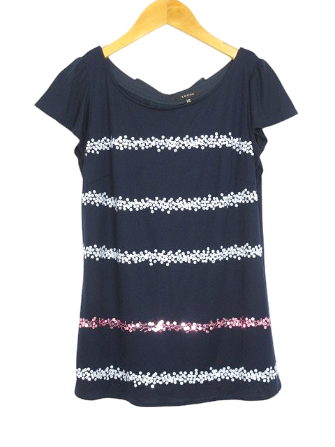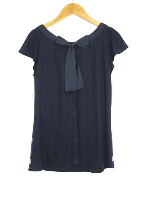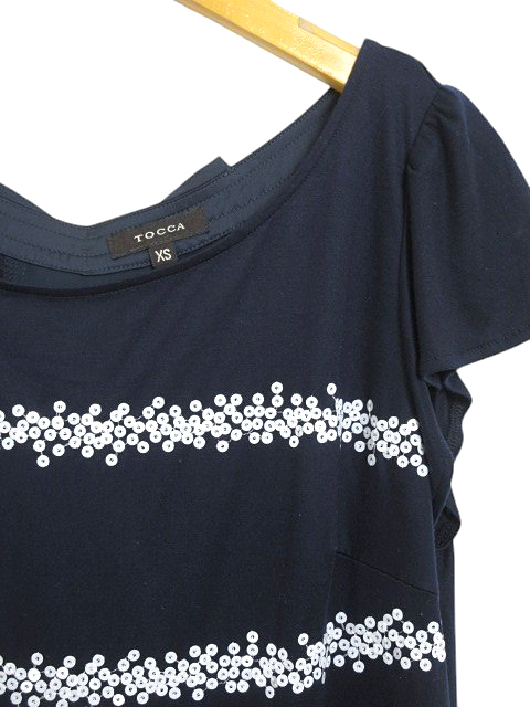 | 【トッカ TOCCA】 ブラウス カットソー スパンコール装飾 半袖 オーガンジー切替 リボン ネイビー size XS レディース | |