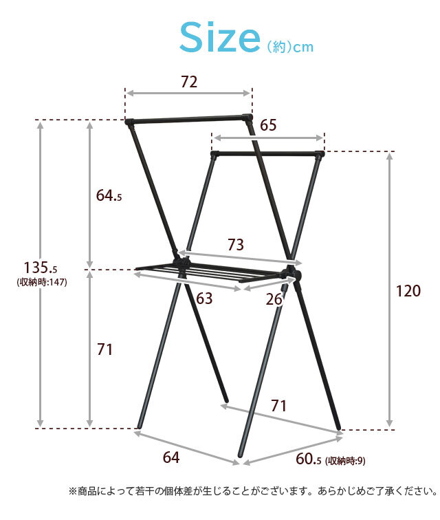 ●収納時:(約)幅73×奥行9×高さ147cm。