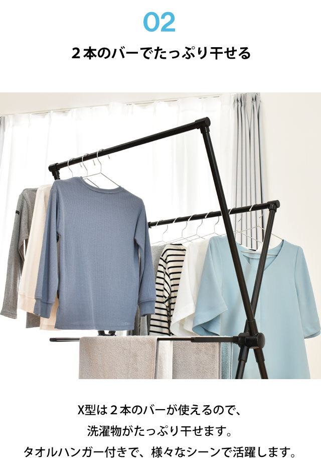 ■コンパクトながら大容量。複数のタオルや衣類を一度に干せる設計になっております。