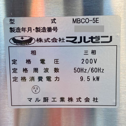 【業界最長1年保証】ベーカリーコンベクションオーブン マルゼン MBCO-5E 業務用 中古/送料別途見積