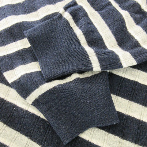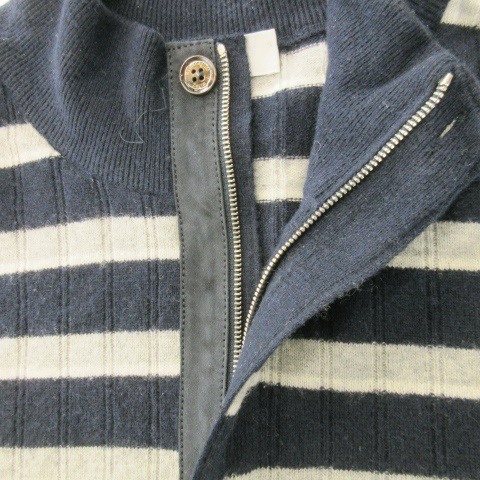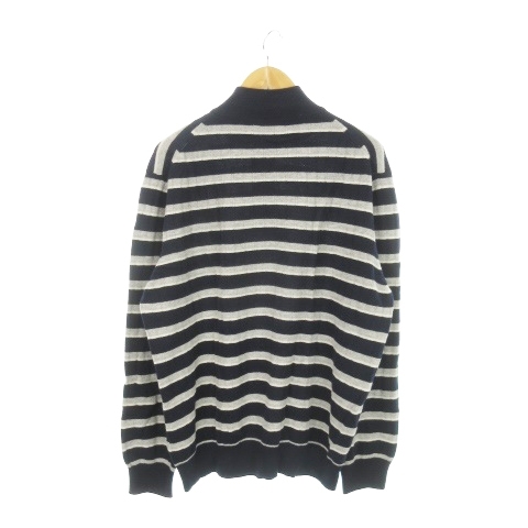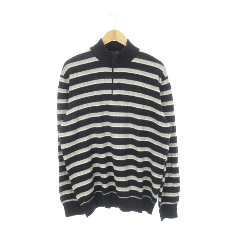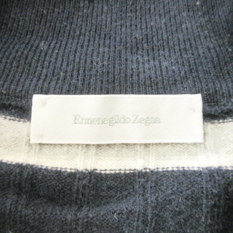 Ermenegildo Zegna ニット セーター 長袖 ハイネック ハーフジップ ウール カシミヤ混 ボーダー 54 XL 紺 ネイビー グレー /AH13