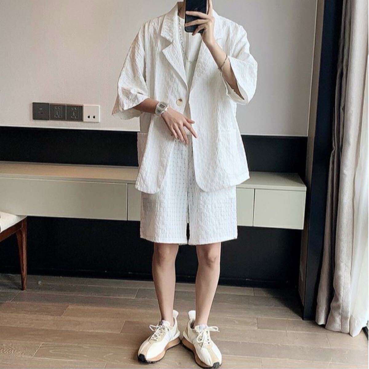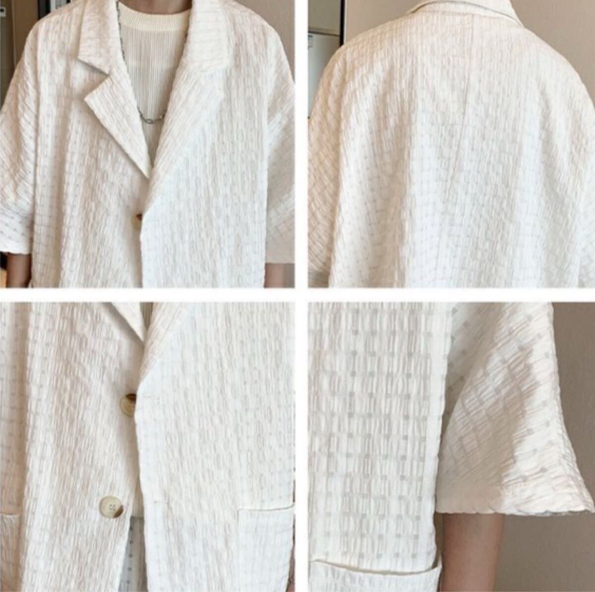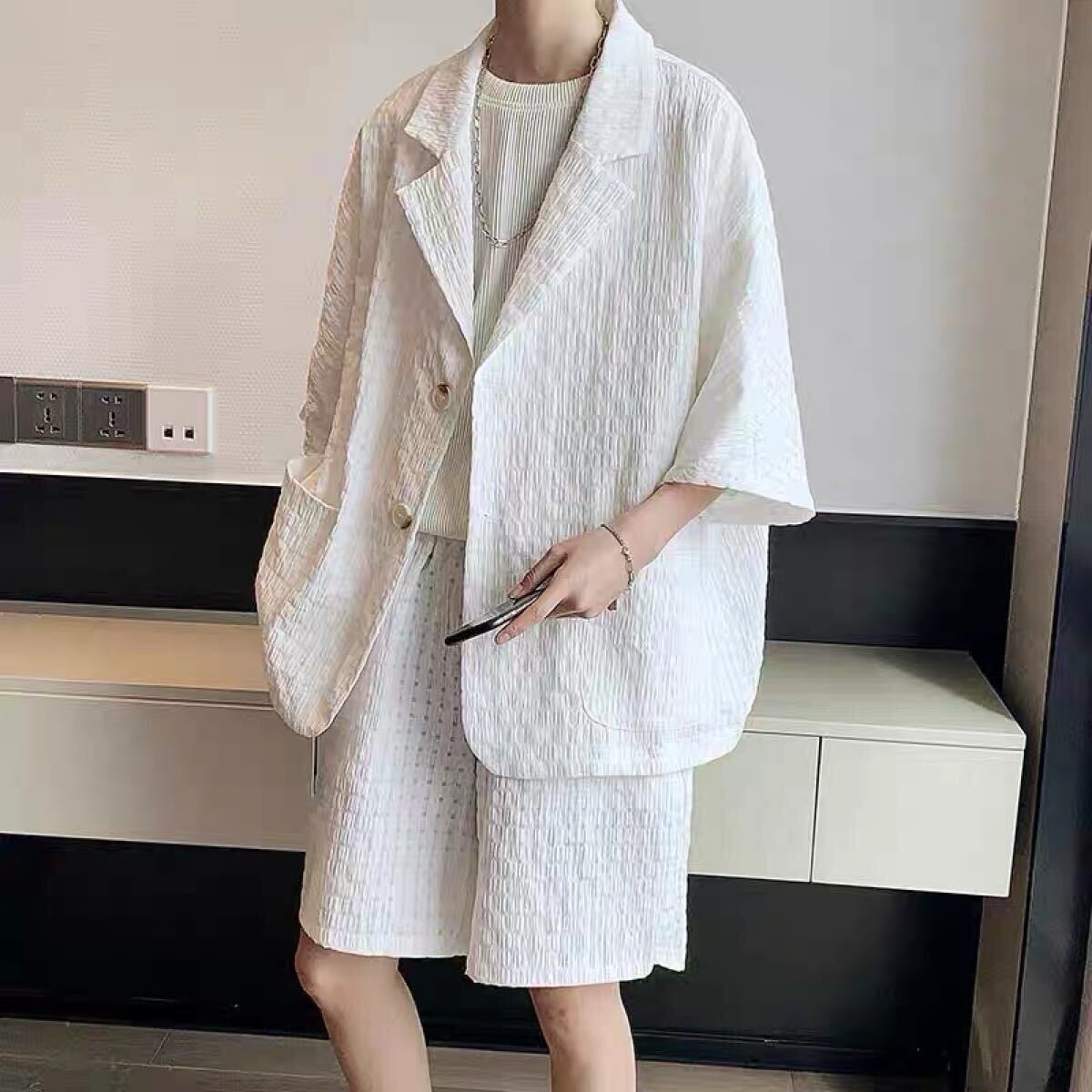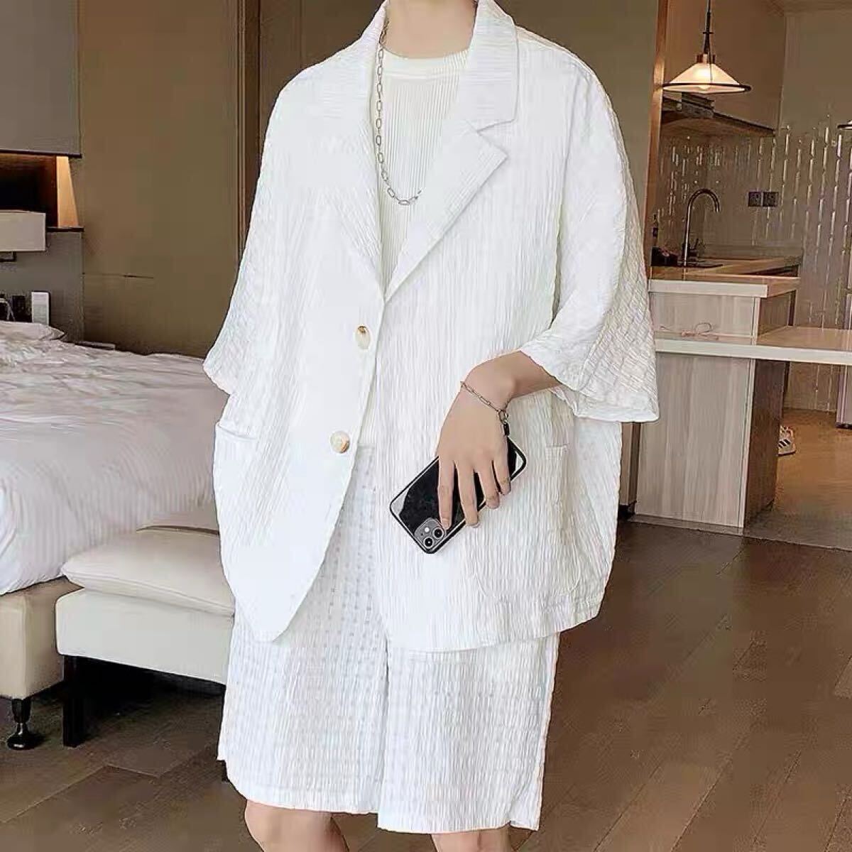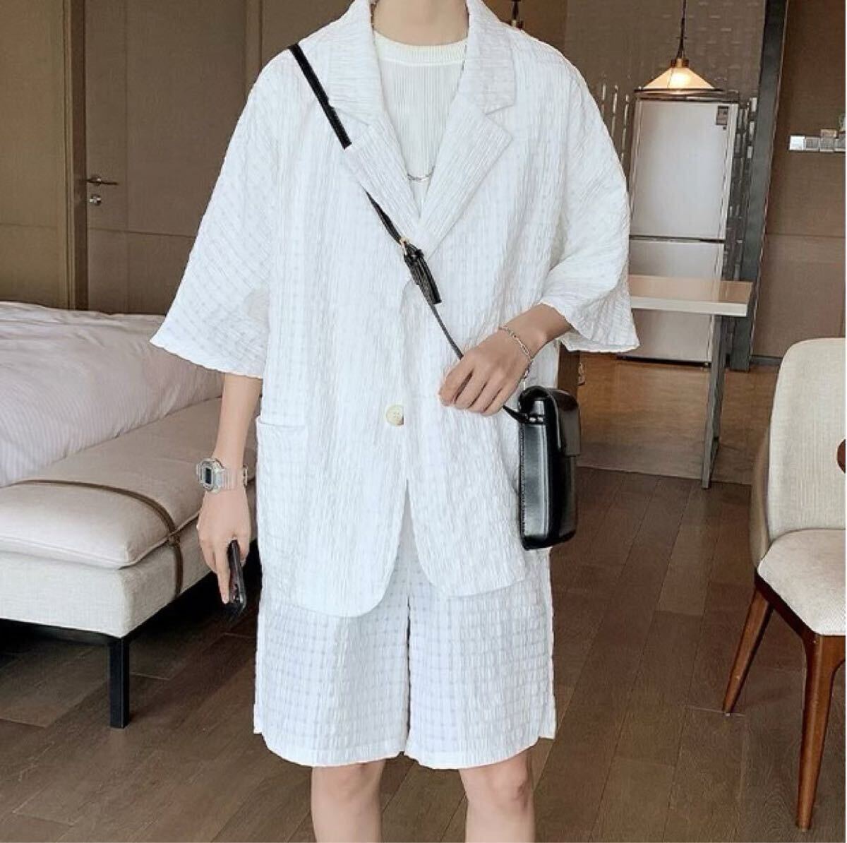 セットアップ ジャケット パンツ 2点セット 部屋着 ワッフル ルームウェア ジャケパン 上下セット ショートパンツ トレンド 白 XXL