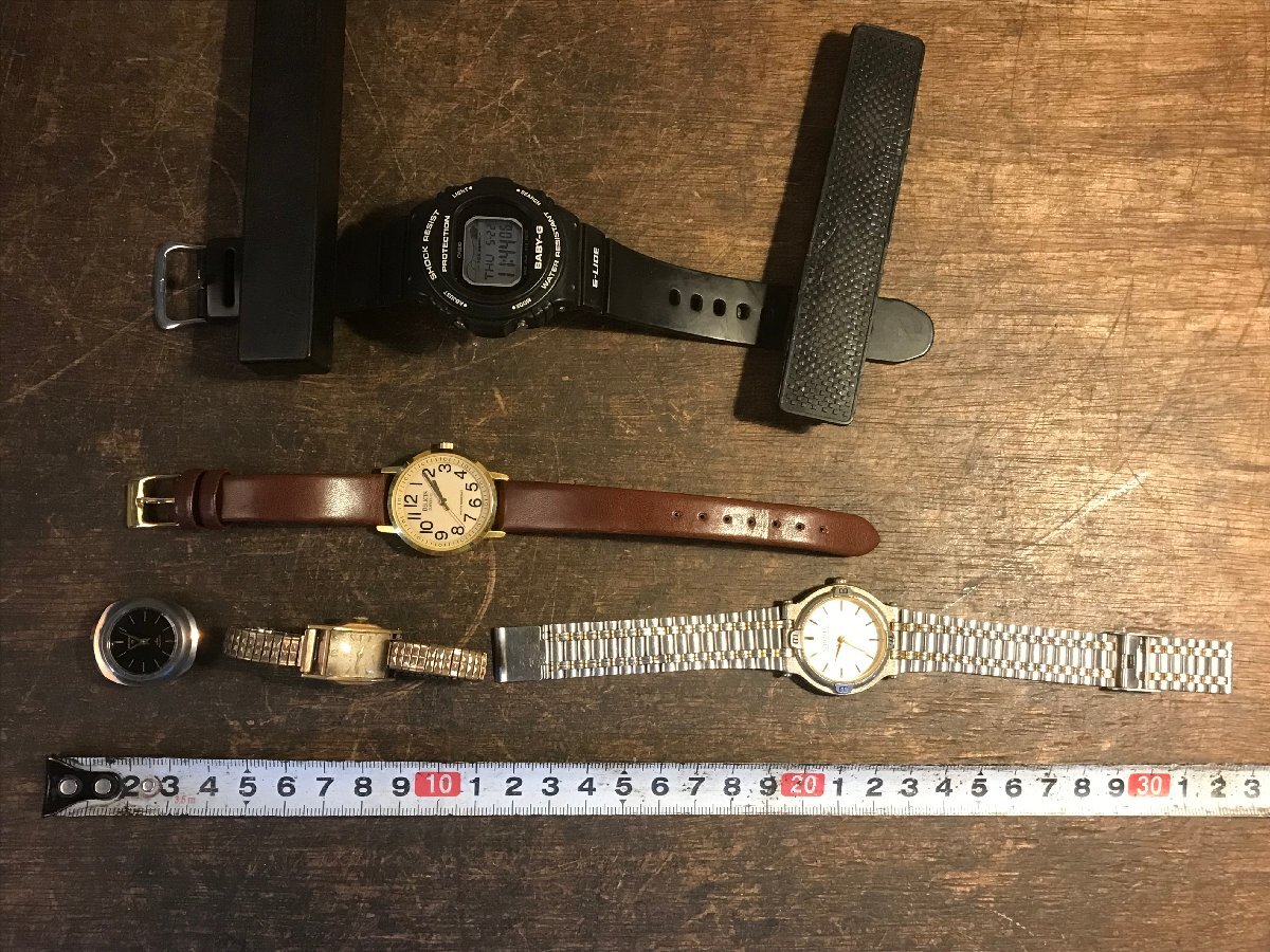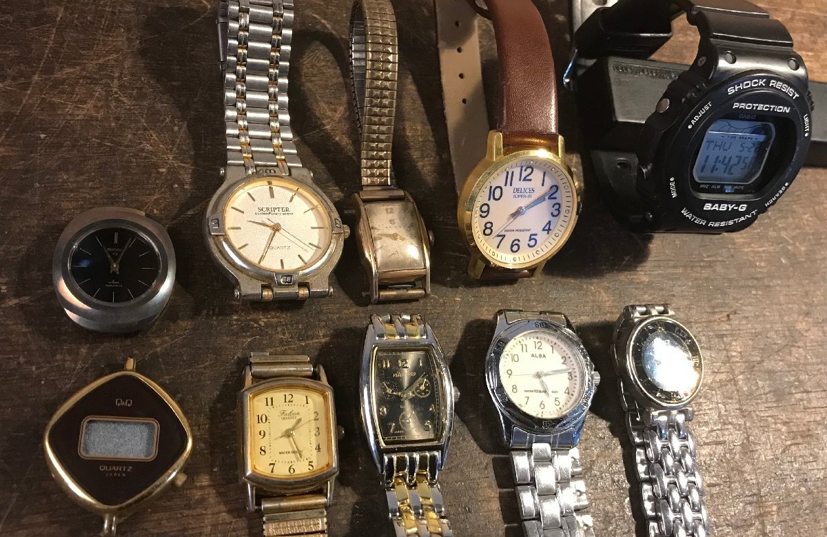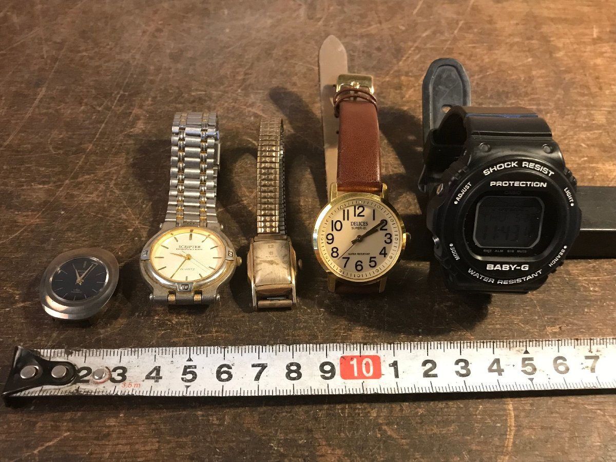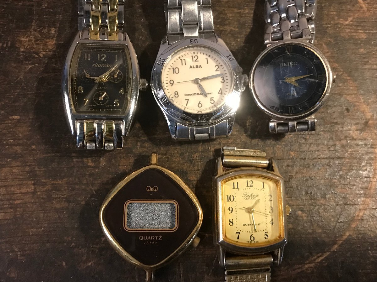 ●商品は全部で10点です。1点のみ現状動作品です。9点は電池が切れているため動作確認をしていません。ジャンク扱いになります。風防、文字盤、ケース、ベルトに傷や汚れがあるものがあります。現状品で発送いたします。