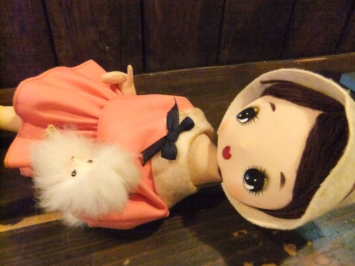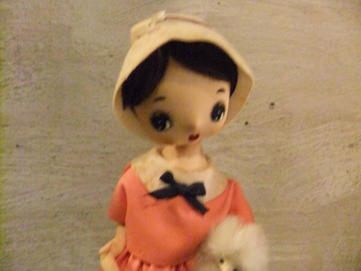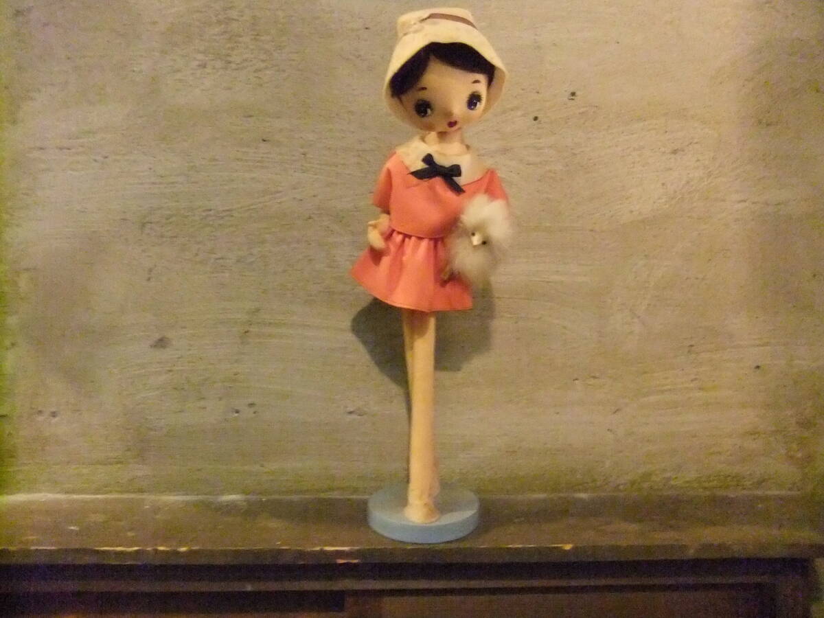 昭和 レトロ スピッツ 犬を抱いた 女の子 ポーズ人形 ぬいぐるみ ビンテージ 当時物 レトロポップ ファンシー 内藤ルネ リボン