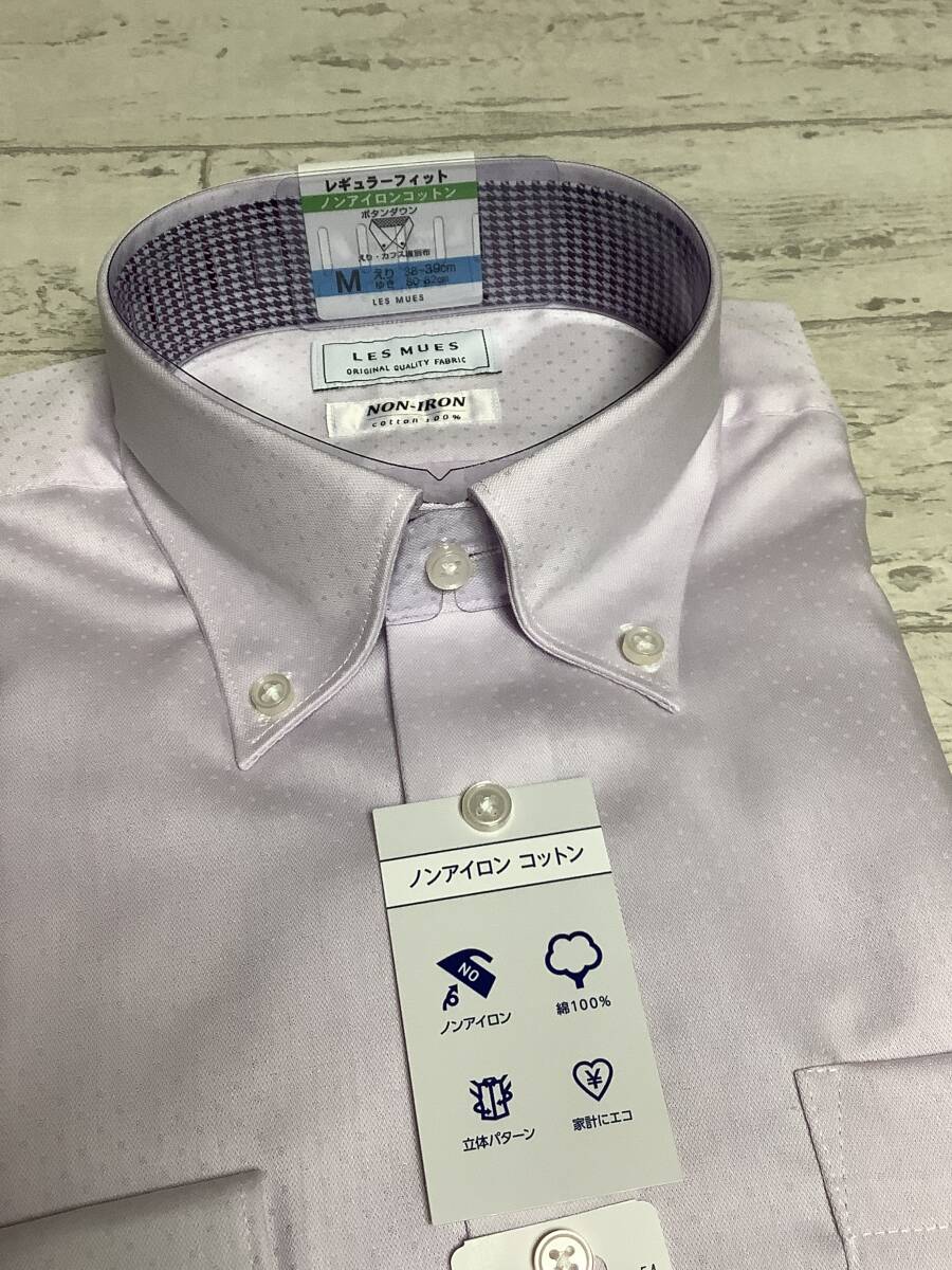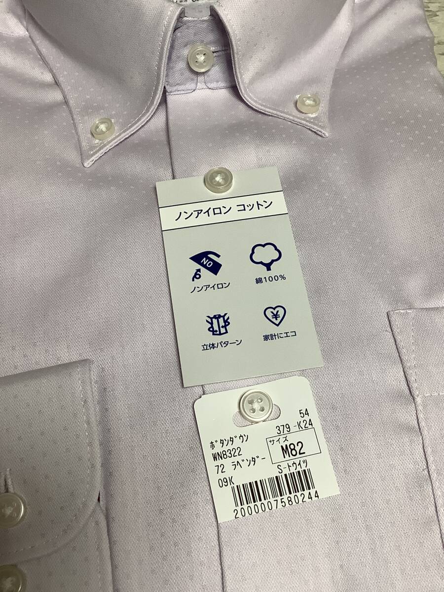 新品未使用 39-82 長袖Mサイズ ★可愛いラベンダー ボタンダウン カッターシャツ 定価4,990円 綿100%ドレスシャツ