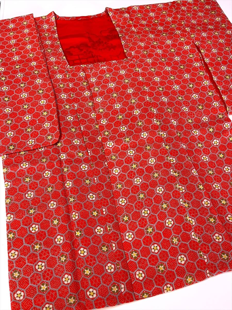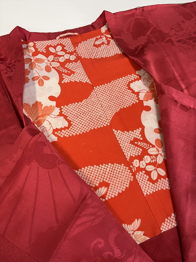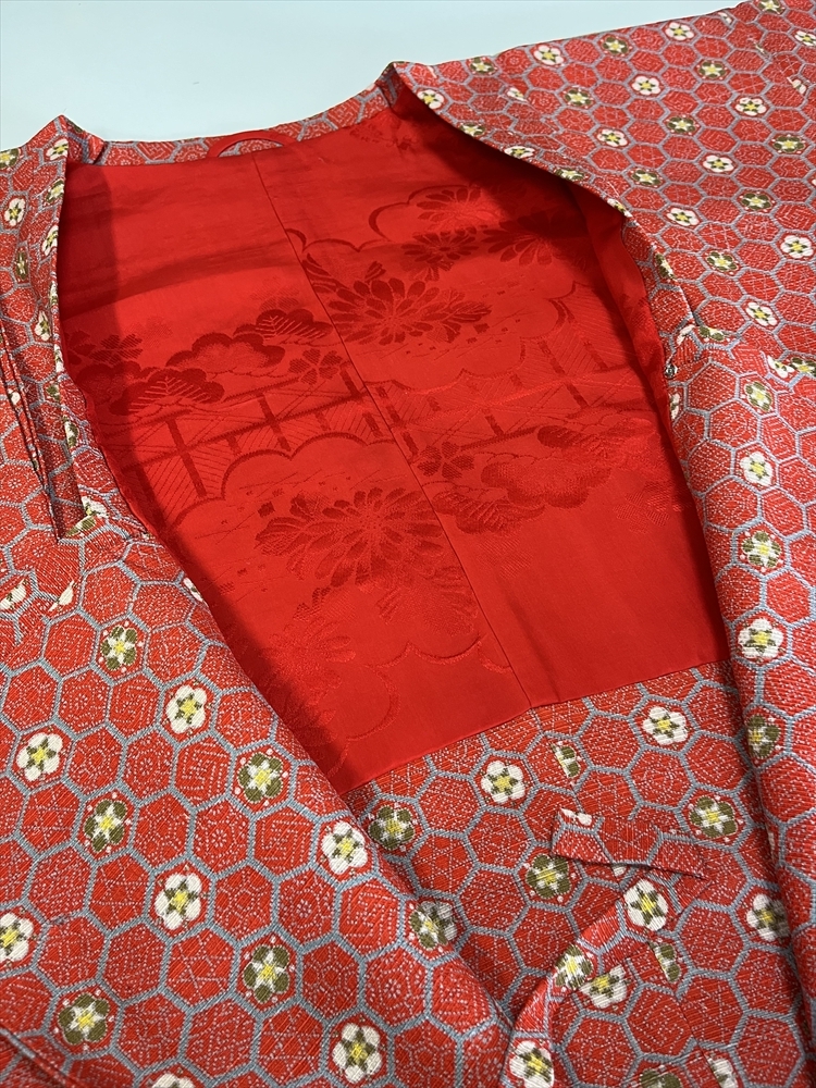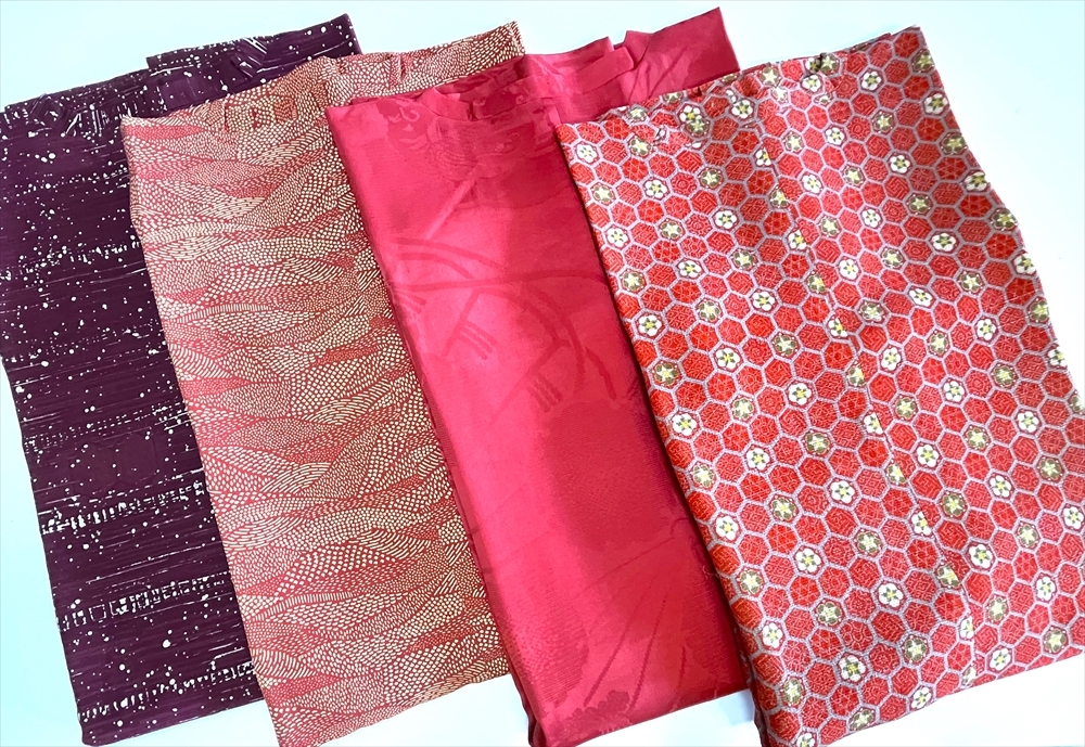 花とら●リサイクル道行 4枚まとめて 着用可能 リメイク 素材 赤 亀甲 茶 紫 赤    250512