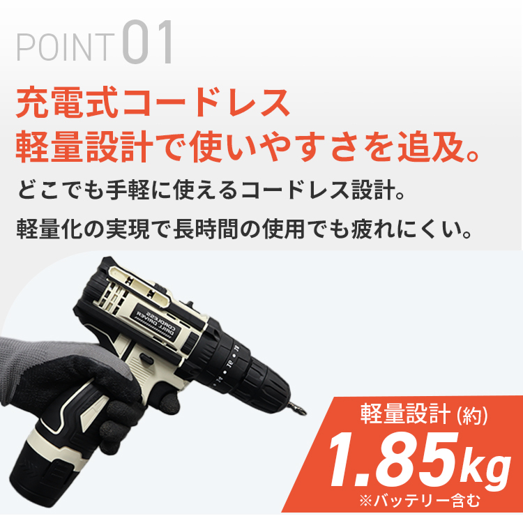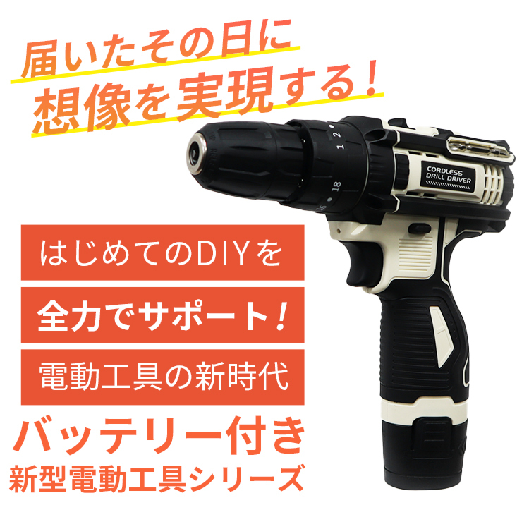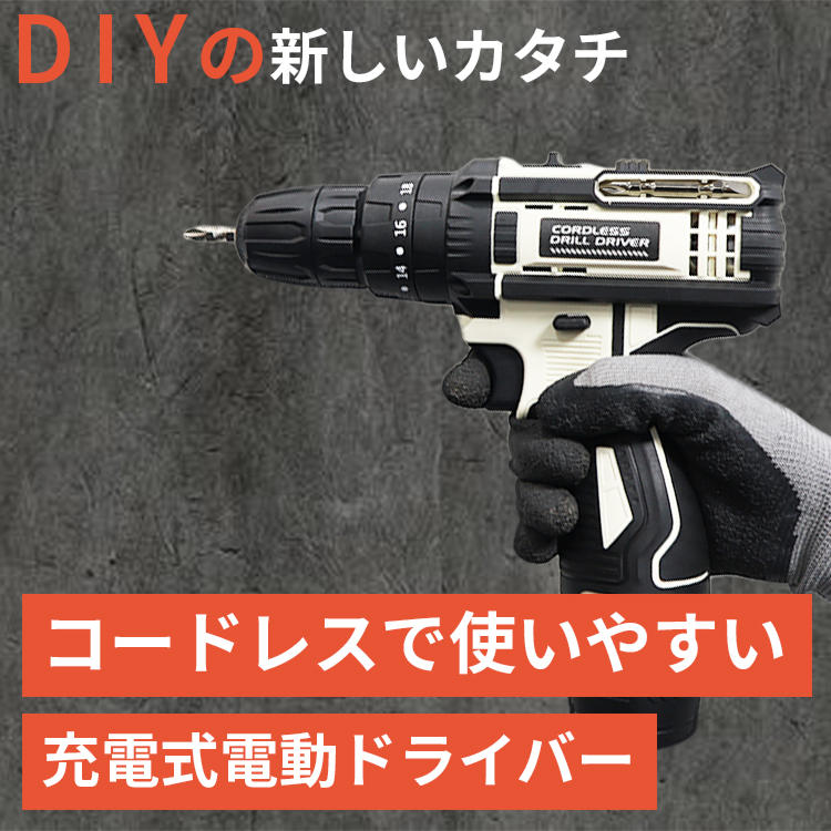 電動ドライバー 電動ドリル 充電式 インパクトドライバー ネジ締め ドリルドライバー DIY 日曜大工 軽量 コードレス コンパクト 充電池 トルク調節 穴あけ作業"