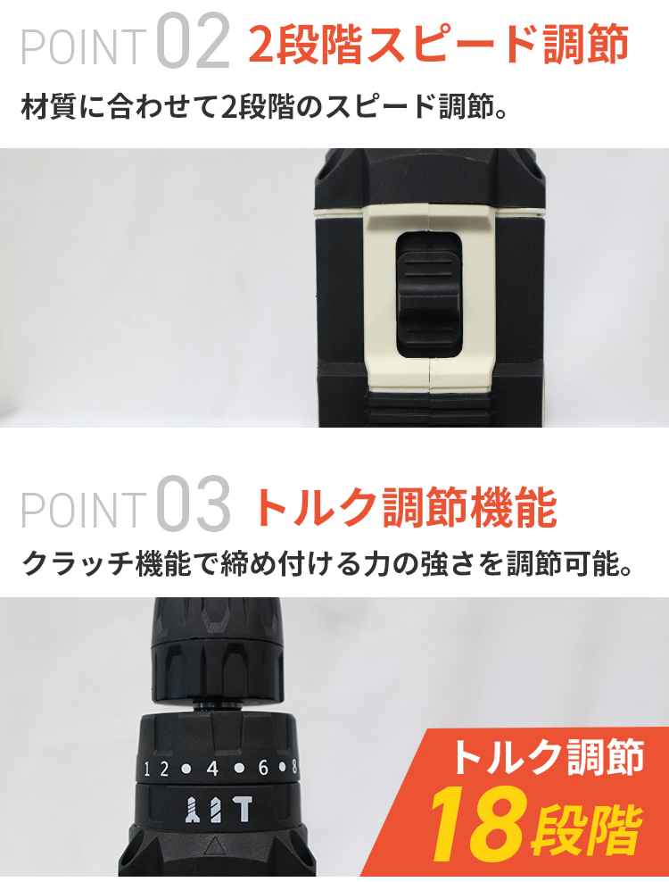 ■二段階のスピード調節&スイッチの押し加減でさらに調整できます。