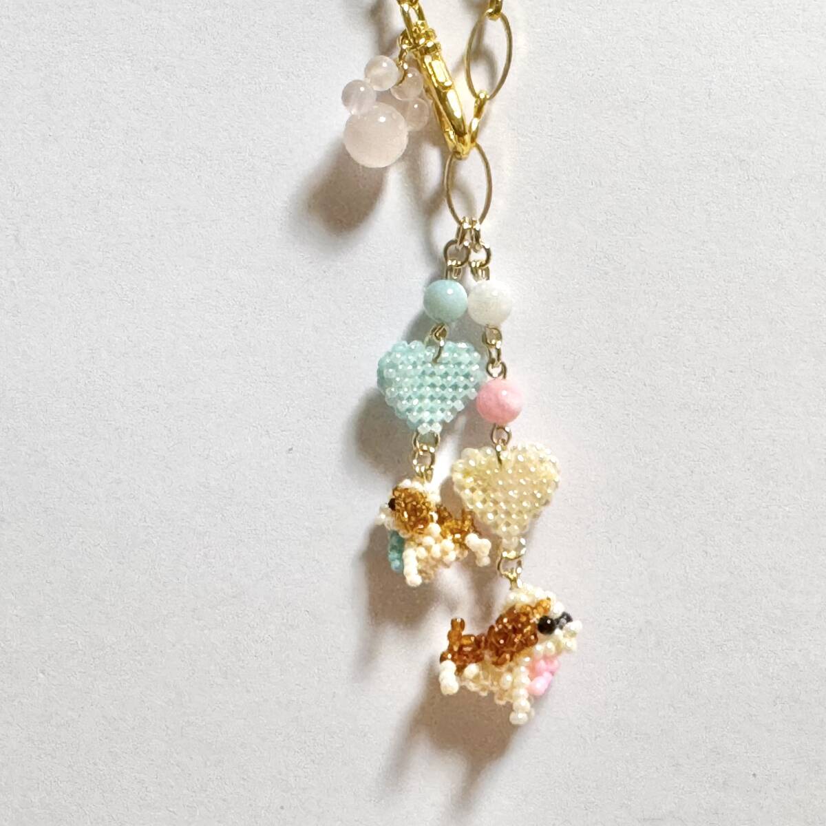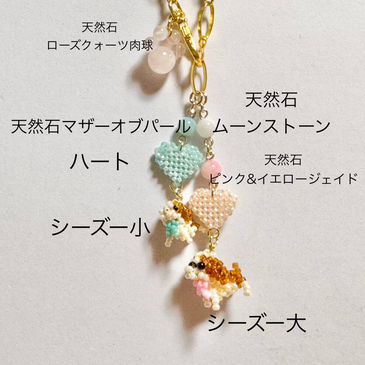 天然石マザーオブパール、天然石ピンク&イエロージェイド、天然石ローズクォーツ肉球チャーム