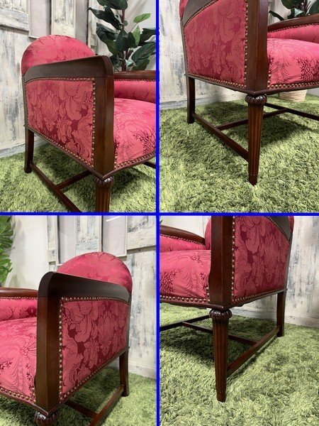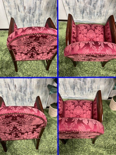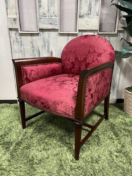 §展示品【海外直輸入 / 輸入家具 イタリア製 / アームチェア 鋲打ち アンティーク家具 クラシック 張替済】輸入家具店購入 P05245