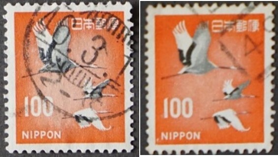 No.4  【2枚セット】丹頂 100円切手  (1968年発行) 単片 使用済2枚(消印:46.3.1)