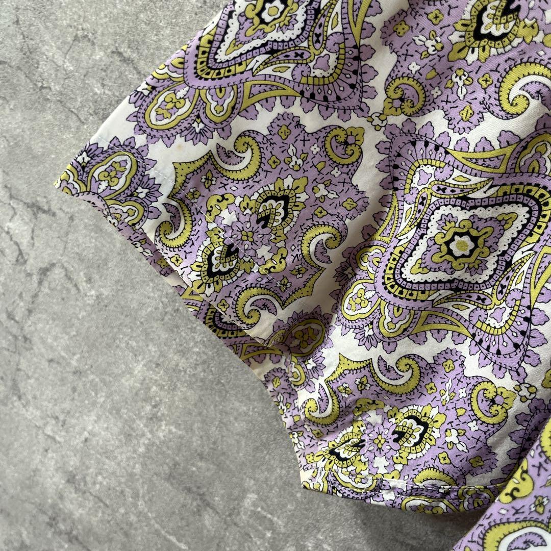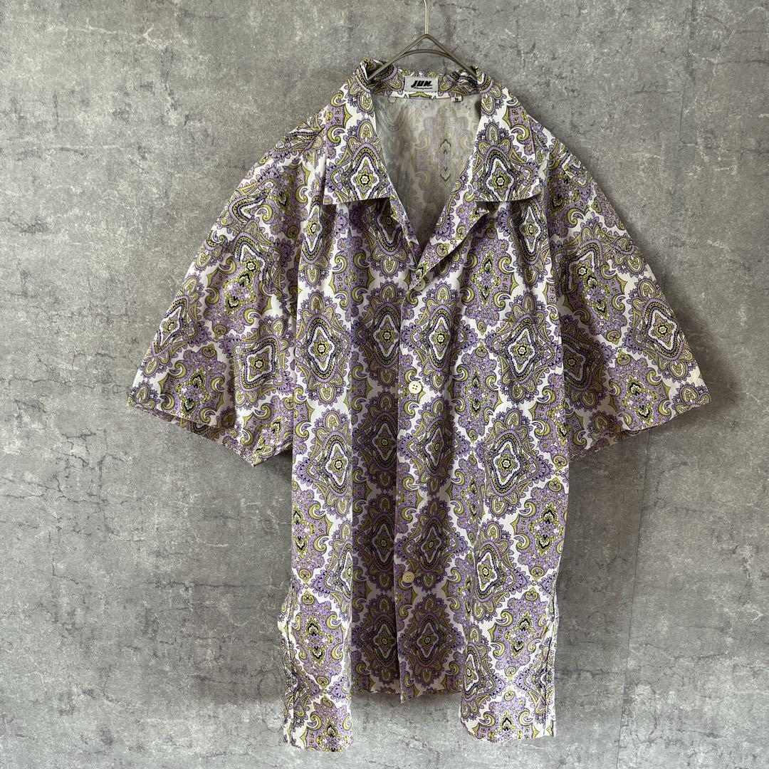 JUN 90sペイズリー柄シャツ半袖オープンカラー開襟ダイヤ模様Mメンズ T1