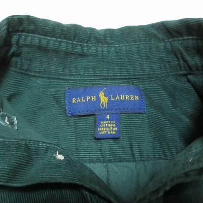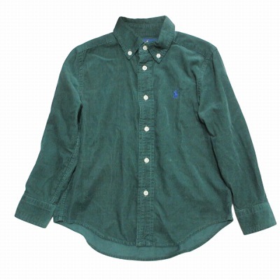 ラルフローレン RALPH LAUREN 美品 コーデュロイ ボタンダウン シャツ キッズ 男の子 子供服 長袖 ポニー ワンポイント刺? 4 110cm 緑