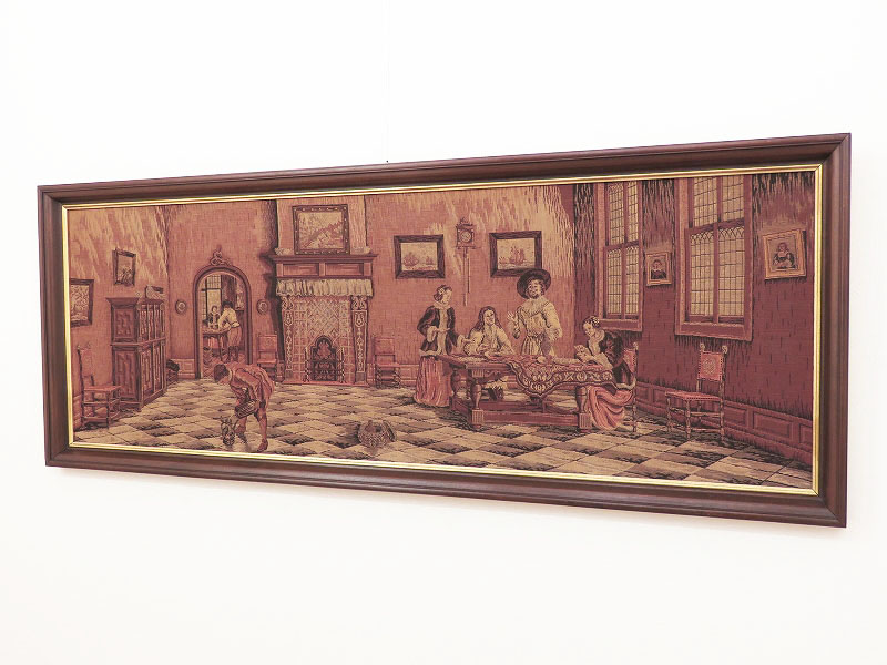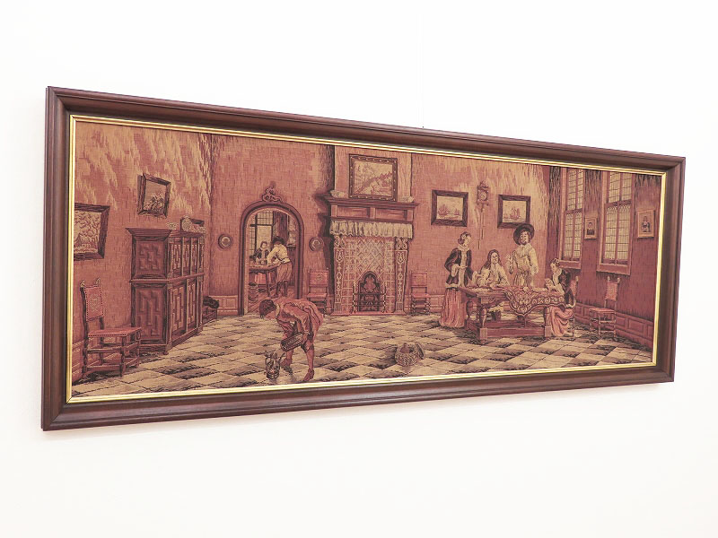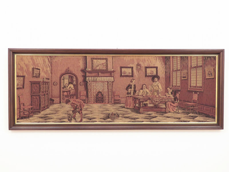 ゴブラン織で作られた横長の室内風景画/店舗什器/ディスプレイ/インテリア/内装/装飾/フランスのアンティーク雑貨/AL-0759