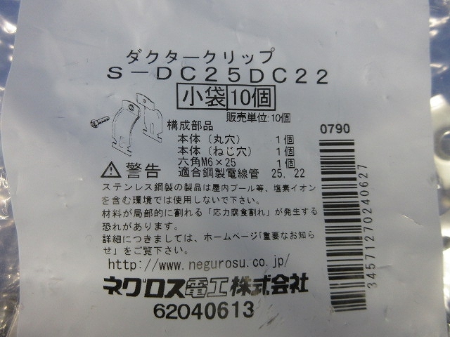 ダクタークリップ ステンレス鋼 10個入 ネグロス電工 S-DC25DC22-10
