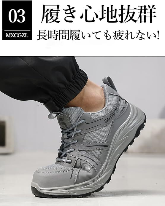 【快適な履き心地】表地に採用した通気性メッシュ素材は、足元の蒸れを効果的に軽減し、快適な作業環境を実現します。さらに、柔らかくフィットするクッション層が、足に優しくサポートし、長時間の作業や移動でも疲労を軽減。