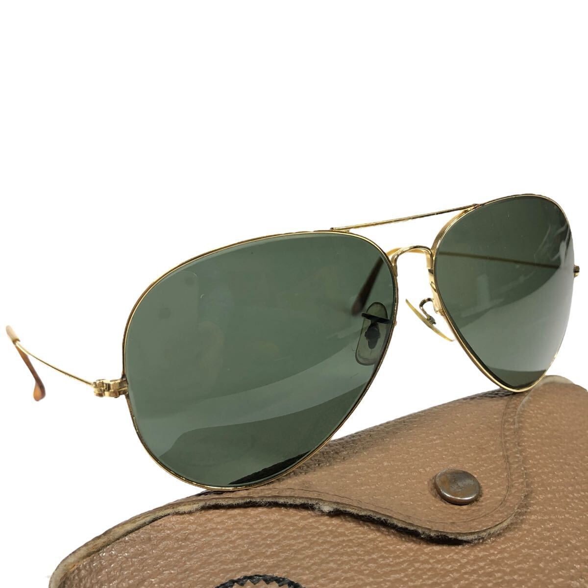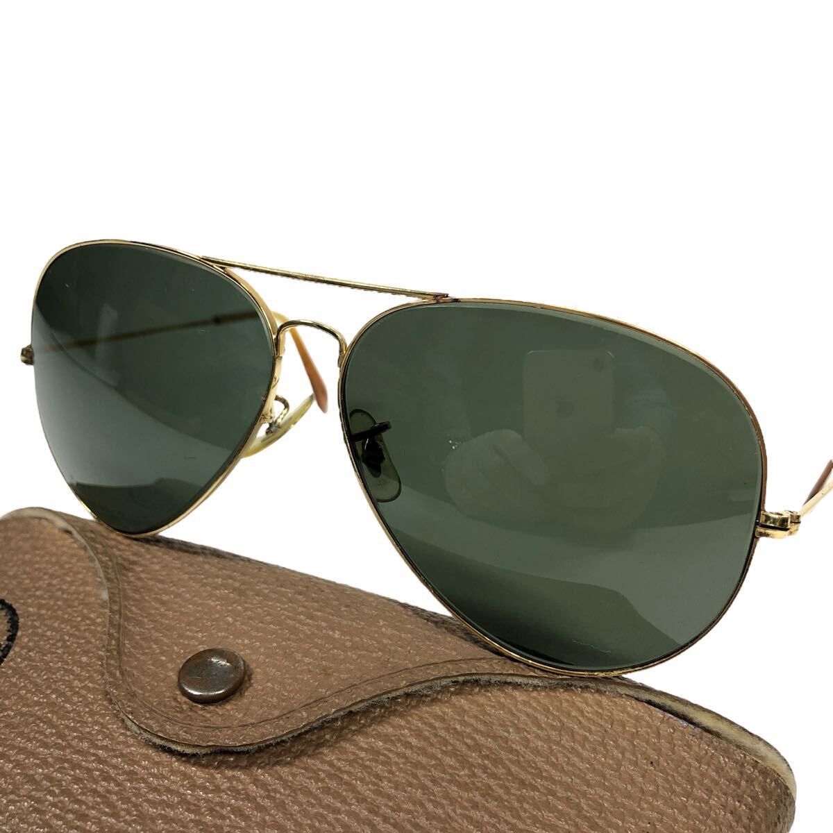 【レイバン】本物 Ray-Ban サングラス B&L ボシュロム ティアドロップ型 アビエーター型 カーキグレー メンズ レディース USA製 ケース付き