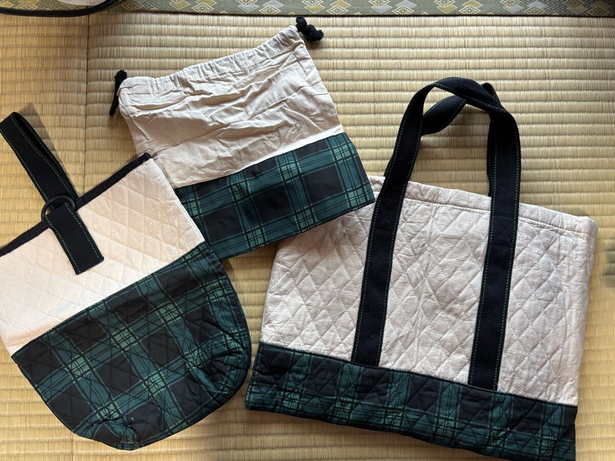 ・・・未使用 入園 入学 バック&上履き入れ&巾着 3点セット 白&緑チェックです。・・・