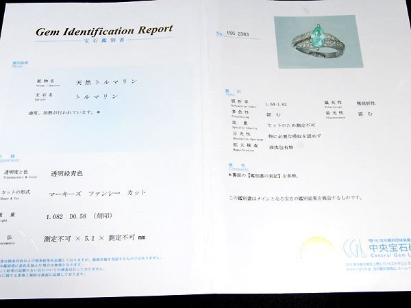 ●ブラジル産 ●1.082ct 【ct数の刻印あり】 ◆天然ダイヤモンド ●総計0.58ct 【ct数の刻印あり】 ◆付属品【中央宝石研究所】発行 産地特定宝石鑑別書&分析報告書】 |