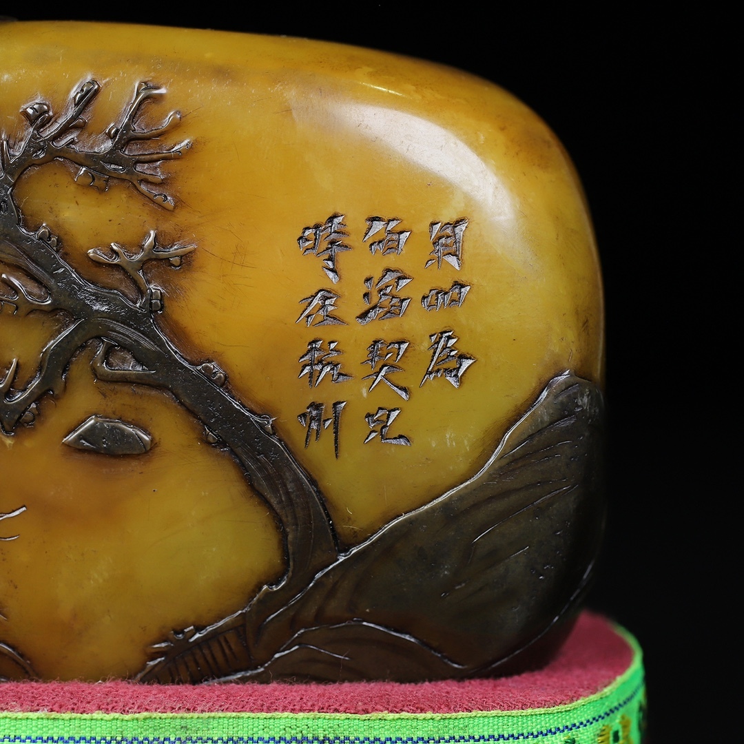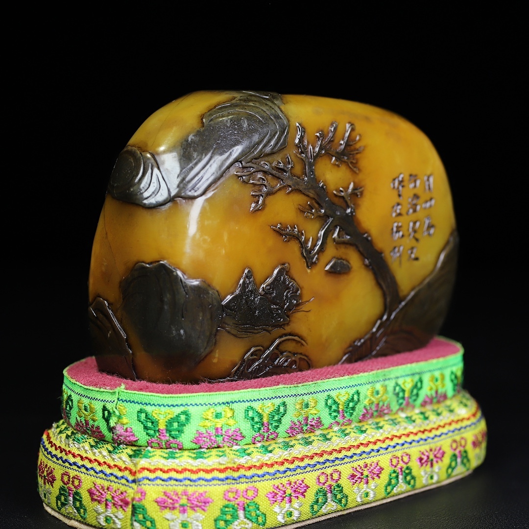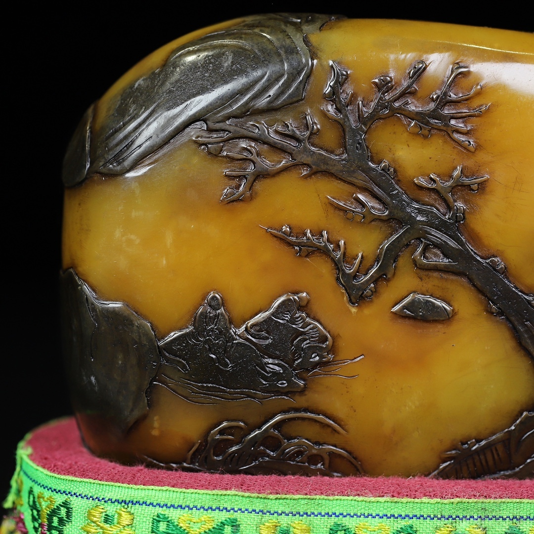 *珍品旧蔵* 清 寿山石 カラス皮 田黄彫刻【童子放牛】人物物語紋 薄意印鑑 天然石 手彫 篆刻 極細工 唐物 中国古玩 骨董品 古美味 H45